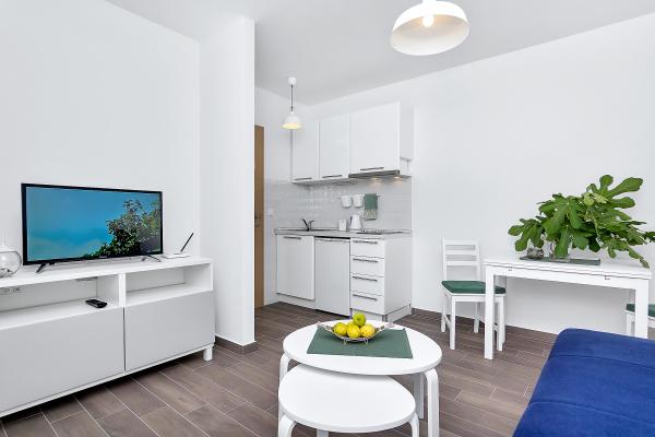 Nově zrekonstruované a plně vybavené apartmány v centru města. Nacházejí se v klidné ulici jen pár minut od nábřeží a veškeré občanské vybavenosti. Nedaleko autobusového nádraží. Pouze 10 minut od nejbližší pláže. Zajištěno bezplatné parkování před domem.