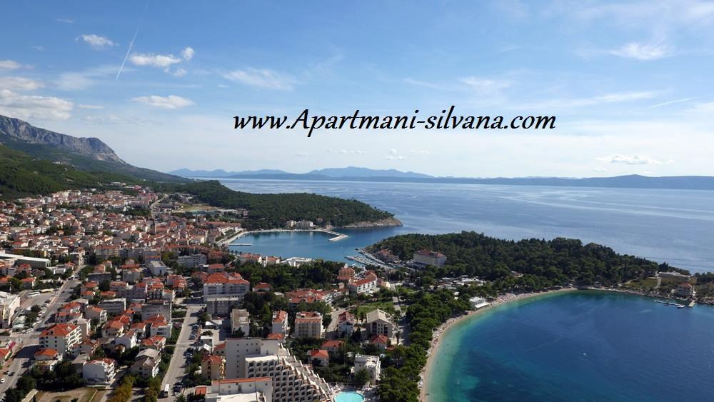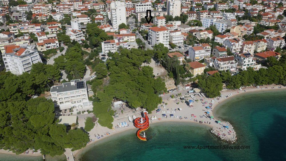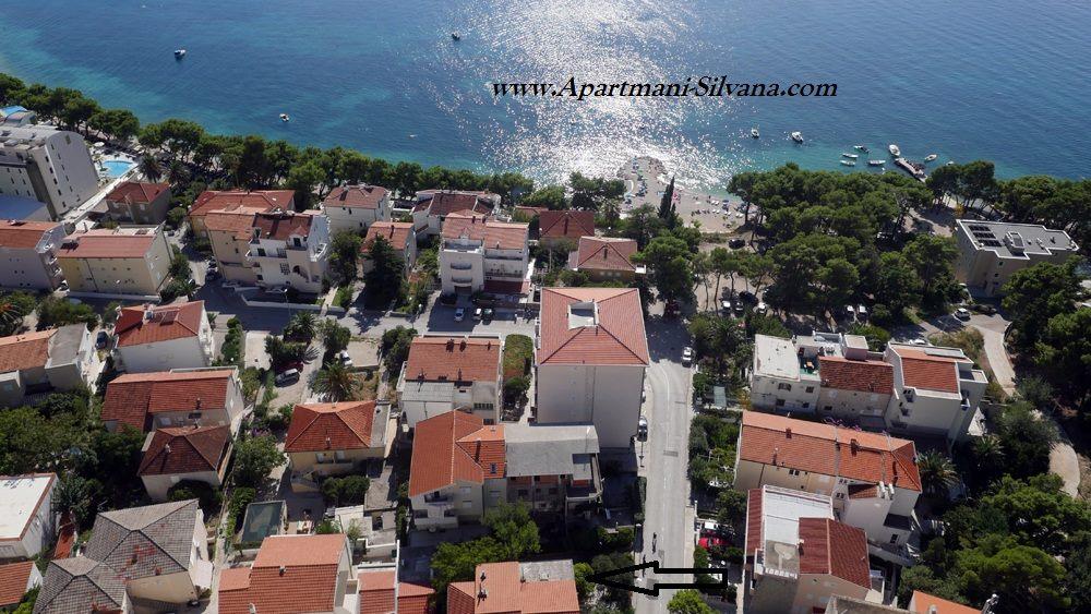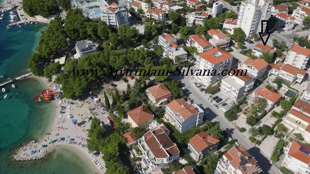 Apartmány "Silvana" (čtyři apartmány a studio) se nachází v centru Makarské, pouhých 80 metrů od městské písečné pláže, která je volně přístupná. Všechny naše apartmány jsou vybaveny kuchyní, jídelnou, WiFi internetem, satelitní TV a balkonem, tedy terasou, dvorem pod korunami dalmatských stromů a s vůní středomořských bylin. Všechny apartmány jsou vybaveny ústředním topením a klimatizací. Jsou vhodné i pro zimní turistiku. Voda v domě na všech kohoutcích je pitná. Všechny apartmány mají vlastní parkoviště. App 4+2, 2 x App 2+2, App 4+ 1 a Studio jsou kompletně zrekonstruované a zařízené novým vybavením.