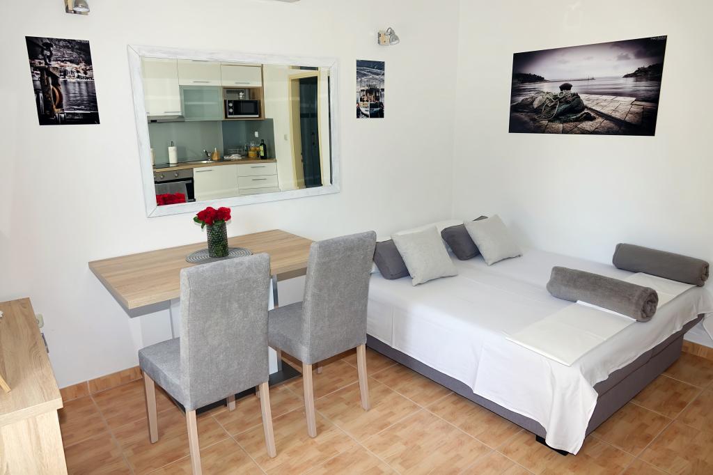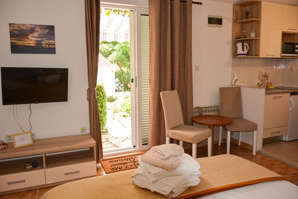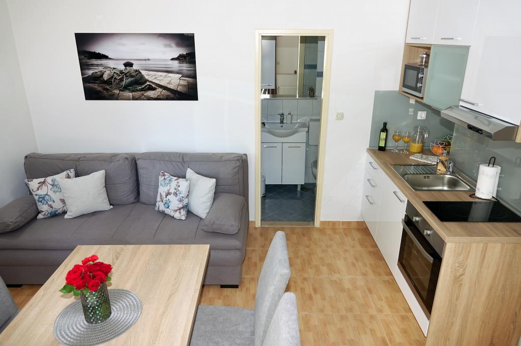 Tento apartmán jsme chtěli rezervovat již několik sezón, ale bohužel jsme neměli čas. Letos jsme měli štěstí a zůstali jsme v jednom z těchto apartmánů. Moc se nám to líbilo. Majitel je pohostinný, umístění je skvělé. Byt je čistý a vybavený pohodlnými postelemi, na kterých budete spát jako dítě.