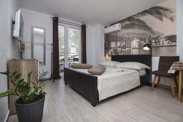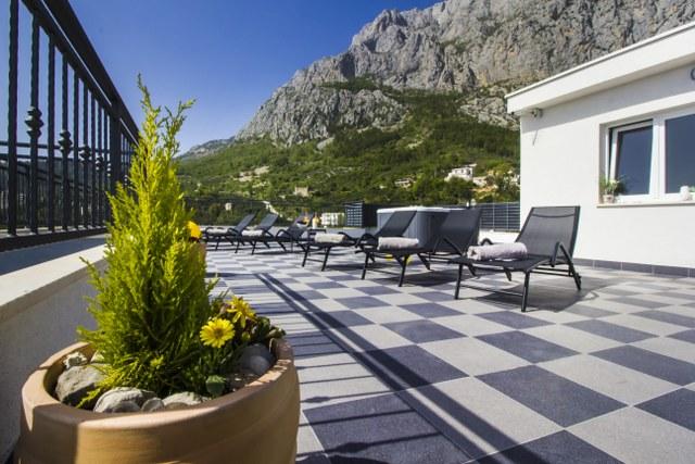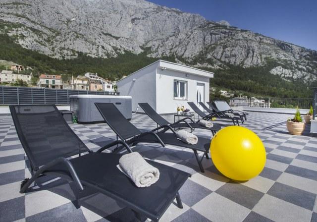 Apartmány a studio Big Hill se nacházejí v západní části Makarské, ve Splitsko-dalmatské župě. Apartmány se nacházejí v klidné části předměstí Veliko Brdo vedle kostela sv. Jerolima. Objekt je obklopen staletým olivovým hájem a levandulovými keři! Všechny ubytovací jednotky mají krásný výhled na moře a ostrovy a na střeše domu se nachází wellness centrum s vířivkou a lehátky, které je k dispozici všem hostům objektu. Výhled z terasy je úchvatný a nechává všechny naše hosty beze slov, před domem je výhled na moře a ostrovy a v pozadí na pohoří Biokovo. Nedaleko se nacházejí dvě restaurace a velký supermarket. Nejbližší pláž je vzdálená 2 km a centrum města 3,5 km! Všechny ubytovací jednotky jsou moderně zařízené a vybavené klimatizací, bezplatným internetem v celém objektu a parkováním před objektem.