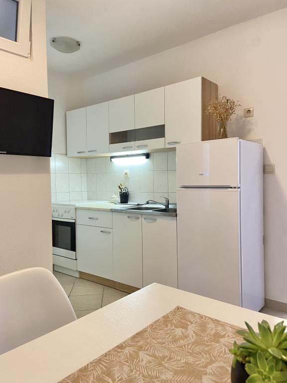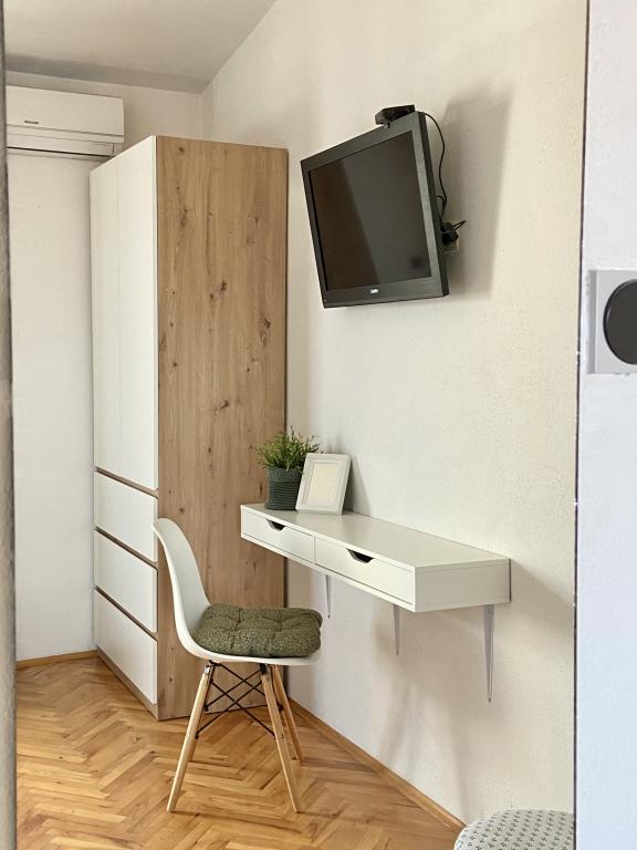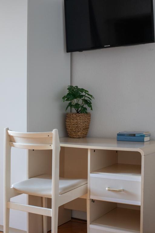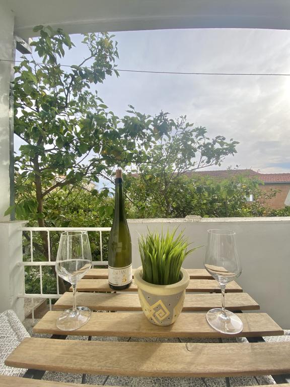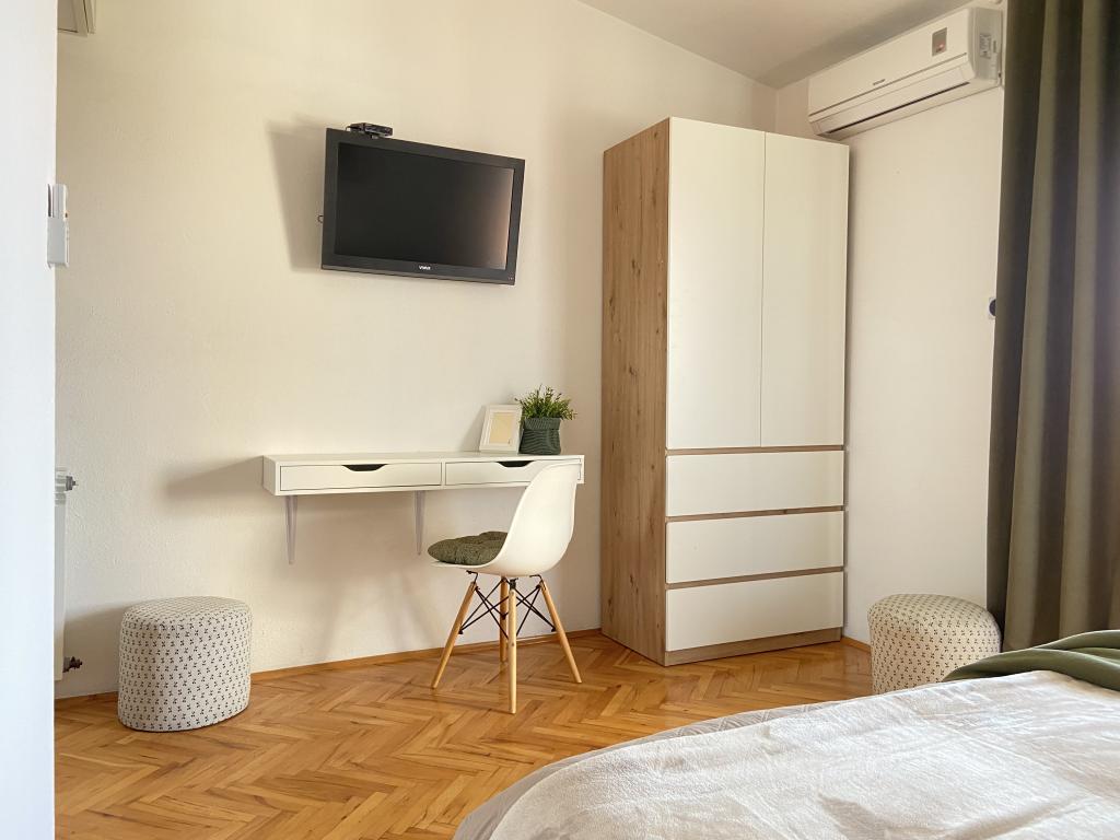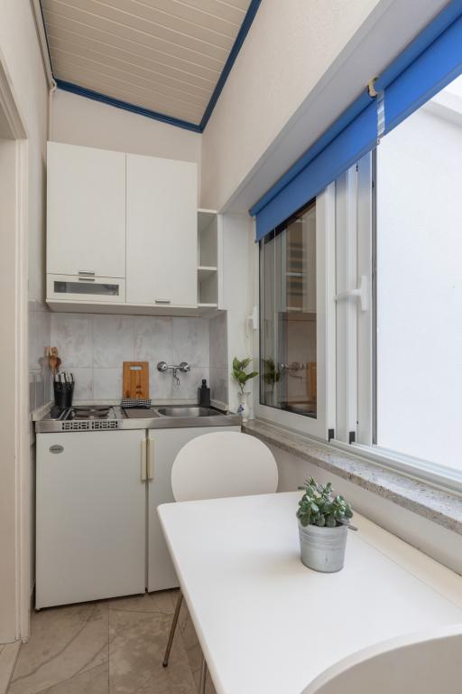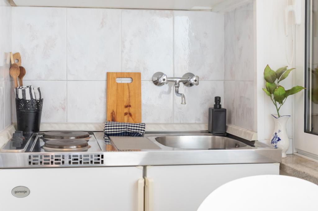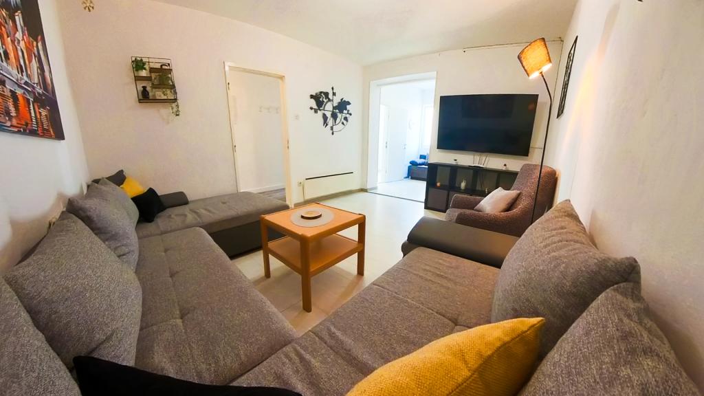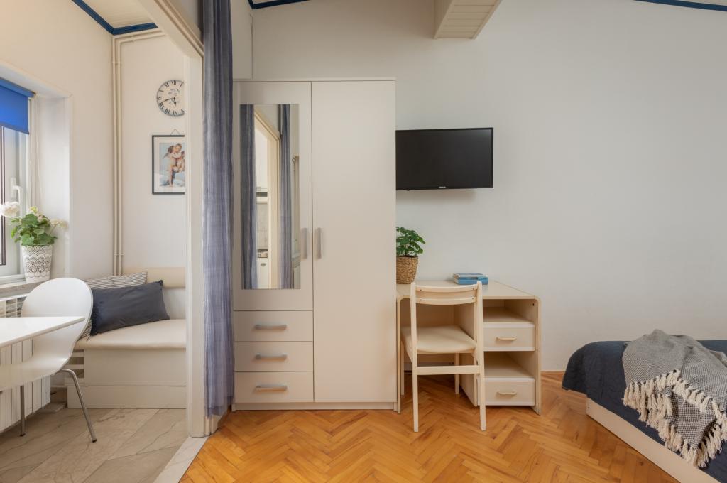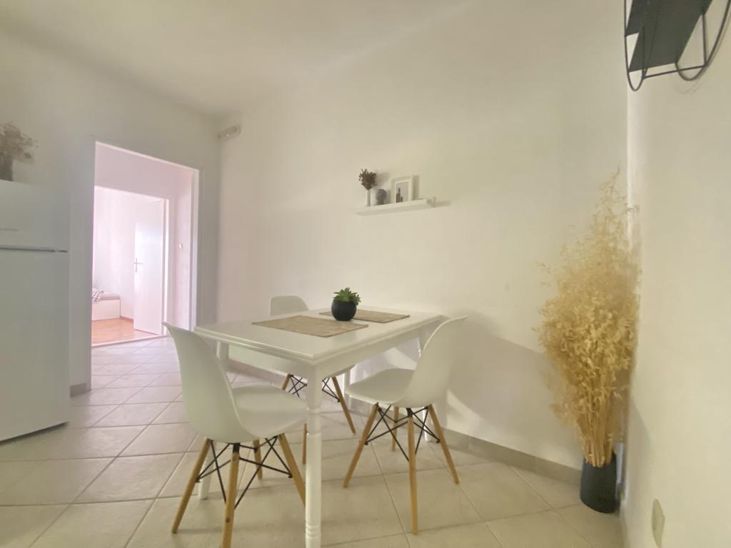 Byt 5 + 4 je ideální pro rodiny s dětmi. Má dvě ložnice (jedna pro 2 a jedna pro 3 osoby), dvě rozkládací pohovky v obývacím pokoji, 3 koupelny, kuchyň a velký dvůr s posezením, grilem a hřištěm pro děti. Menší apartmány a pokoje v objektu jsou vhodné pro 2 až 3 osoby. Objekt je vzdálen od pláže do 5 minut chůze a 10 minut do centra.