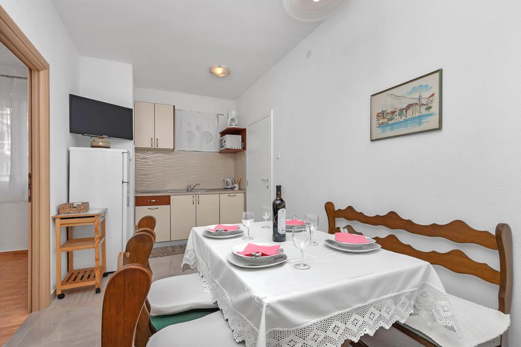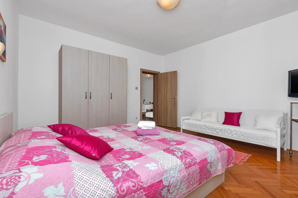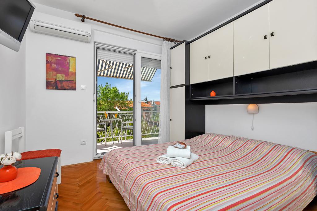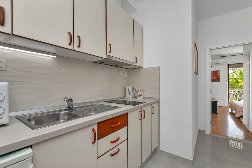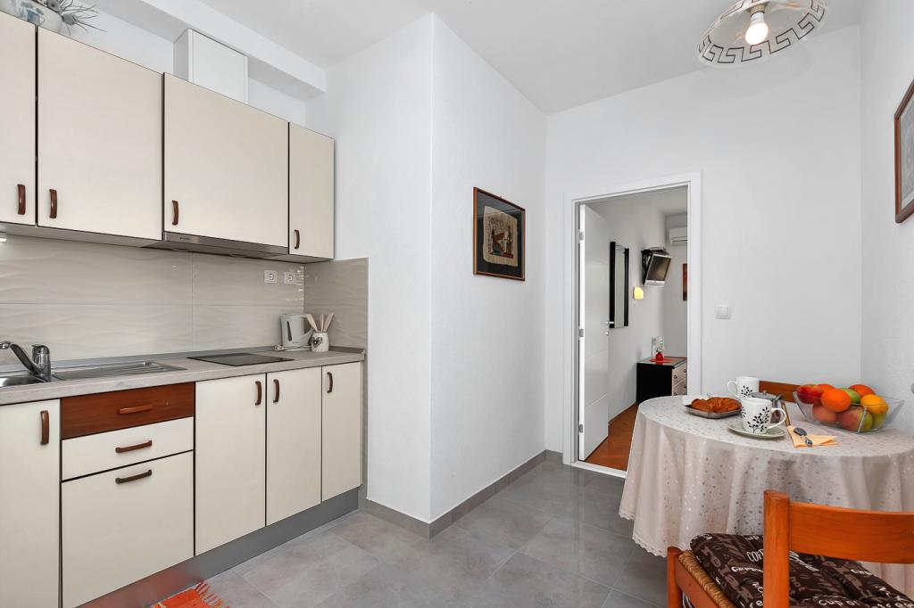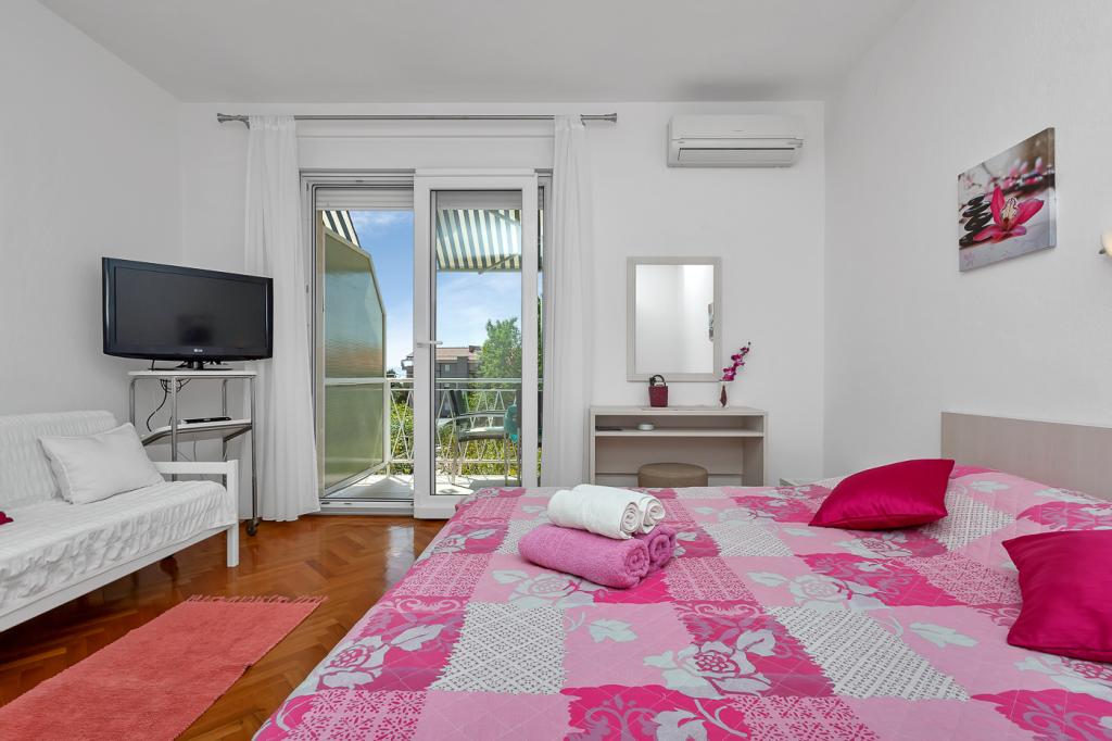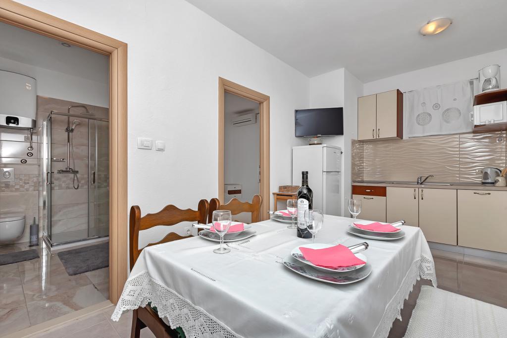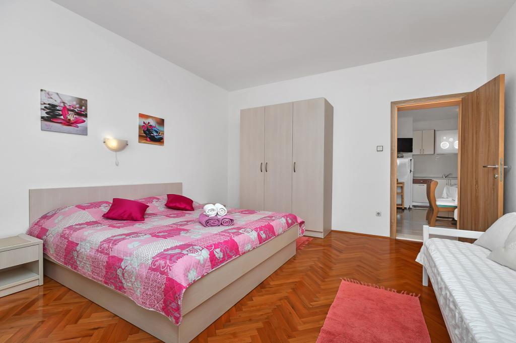 Naše moderně vybavené apartmány se nacházejí v rodinném domě v klidné části města, mezi Hotelem Biokovka a Hotelem Places-Dalmacija. Písečná pláž je jen 50 metrů od domu, stejně jako dva obchody s potravinami. Do centra města se dostanete za 10 minut procházkou po krásné promenádě obklopené borovicemi, podél které jsou četné restaurace a další zajímavá zařízení. K dispozici máme 3 ubytovací jednotky, každá s vlastním balkonem, vybavenou kuchyní oddělenou od spací části a samostatnými koupelnami. Cena zahrnuje parkování, internet, klimatizaci a pobytovou taxu.