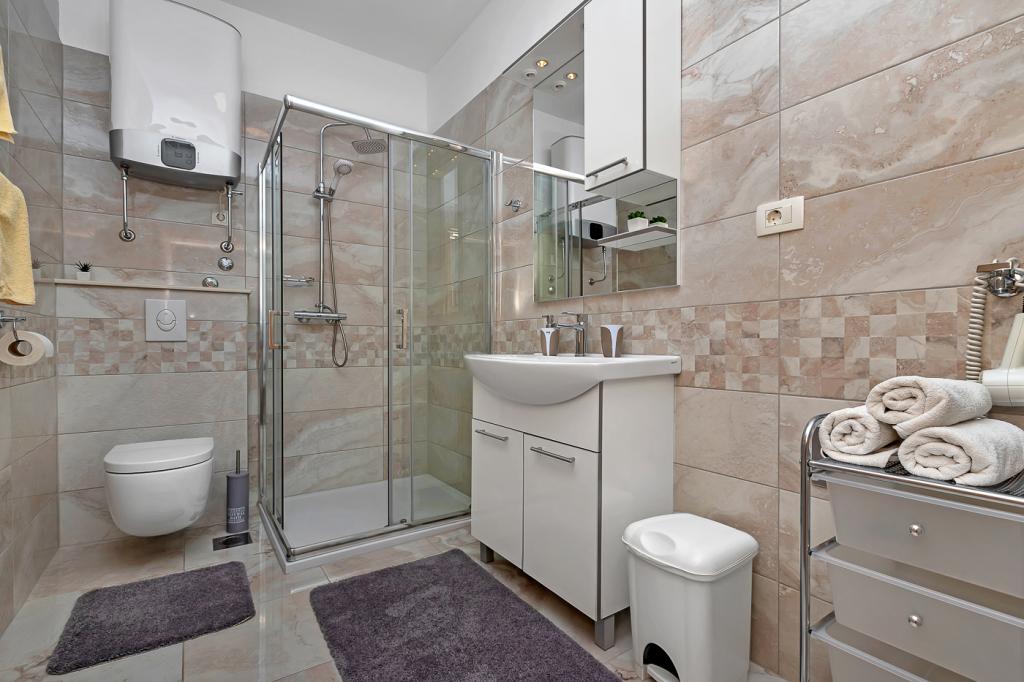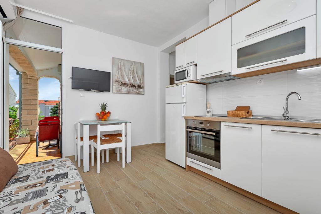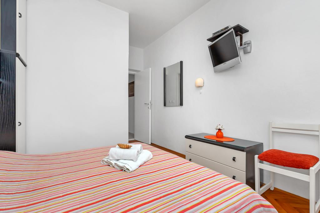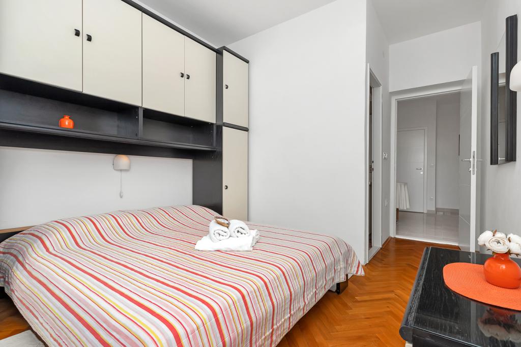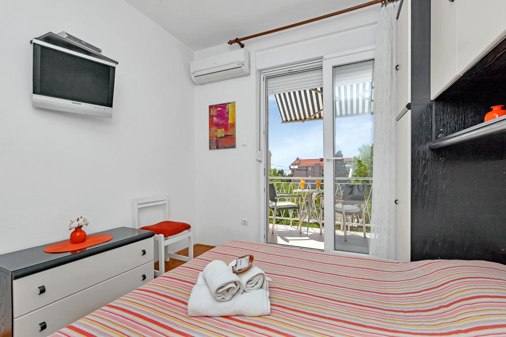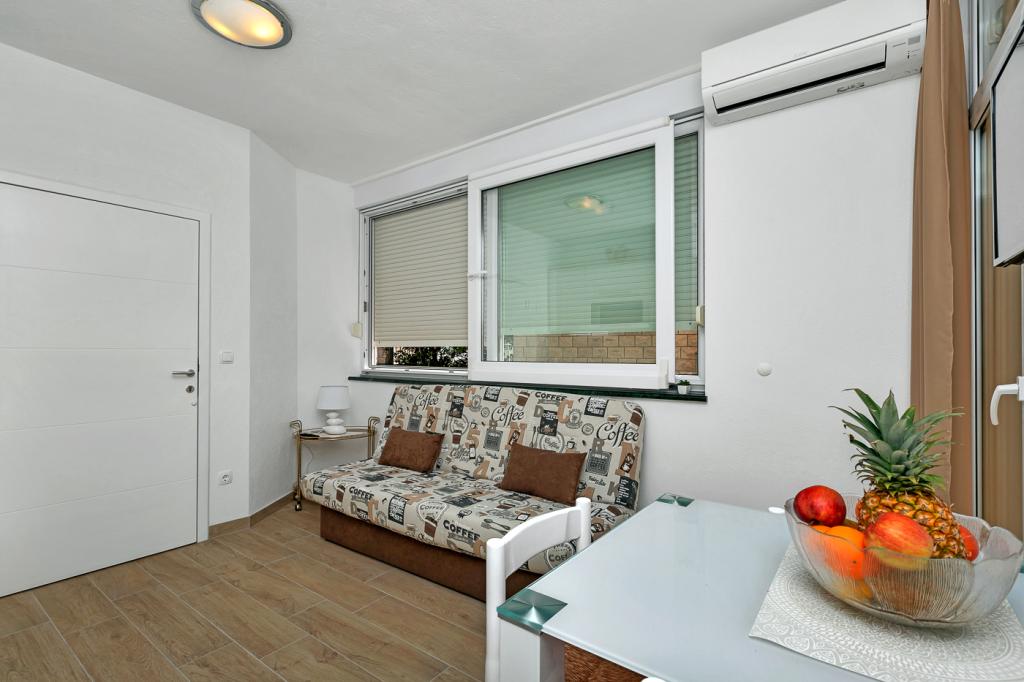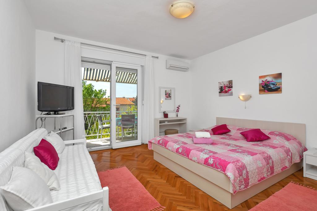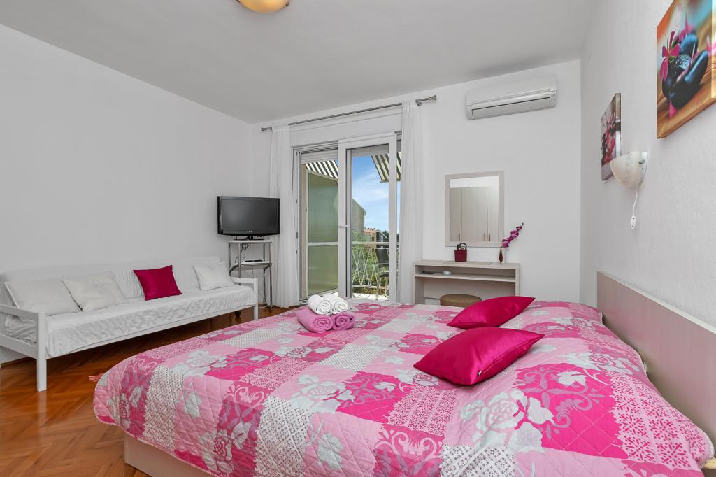 Naše moderně vybavené apartmány se nacházejí v rodinném domě v klidné části města, mezi Hotelem Biokovka a Hotelem Places-Dalmacija. Písečná pláž je jen 50 metrů od domu, stejně jako dva obchody s potravinami. Do centra města se dostanete za 10 minut procházkou po krásné promenádě obklopené borovicemi, podél které jsou četné restaurace a další zajímavá zařízení. K dispozici máme 3 ubytovací jednotky, každá s vlastním balkonem, vybavenou kuchyní oddělenou od spací části a samostatnými koupelnami. Cena zahrnuje parkování, internet, klimatizaci a pobytovou taxu.