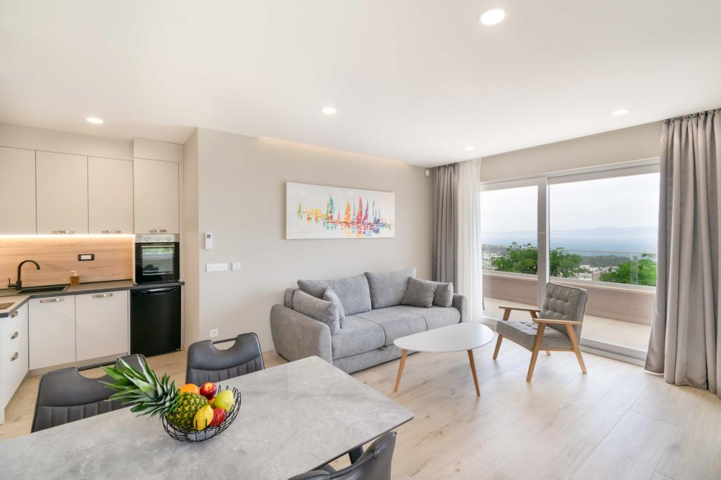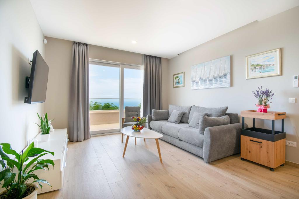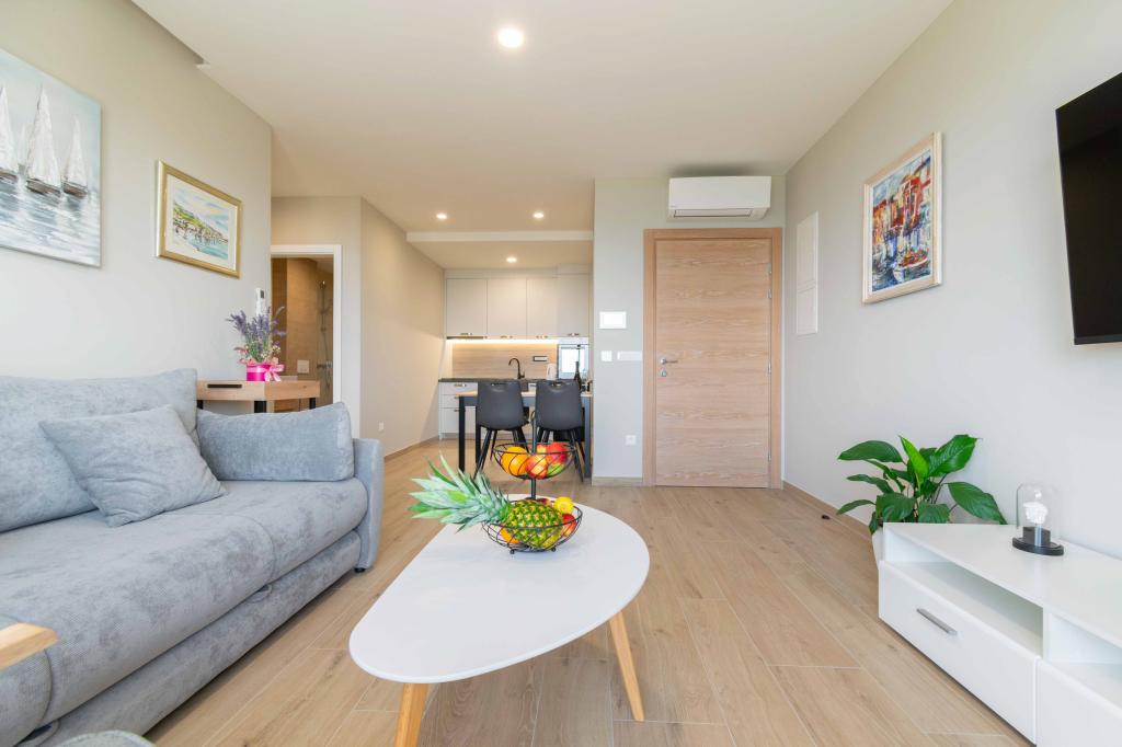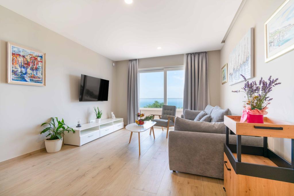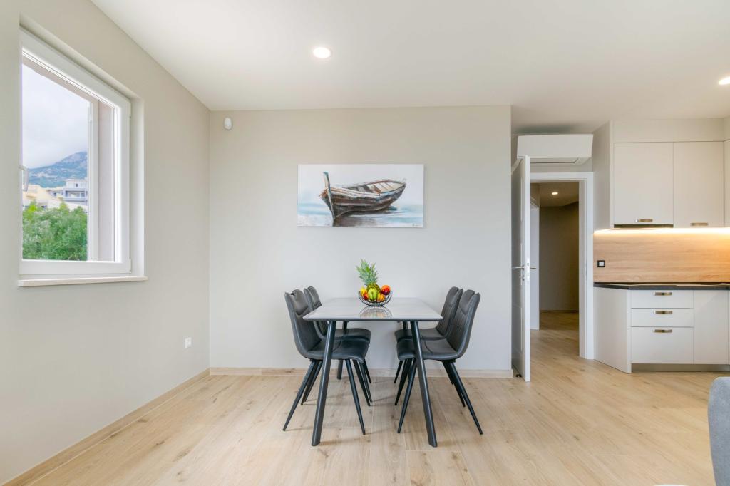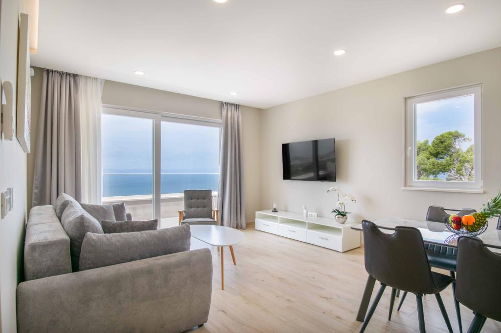 Moderní 2+2 apartmány s výhledem na moře v Makarské Moderní byt 50m². 1 ložnice, 1 koupelna, plně vybavená kuchyň. Krásný výhled na moře. K apartmánům patří parkovací stání před budovou. Domluvte si prohlídku ještě dnes a udělejte z tohoto bytu svůj nový domov.