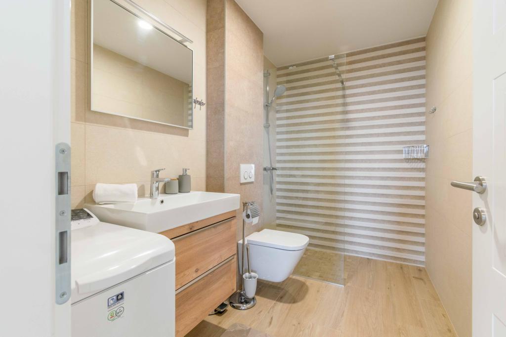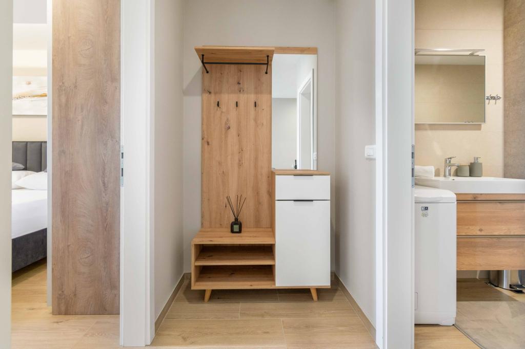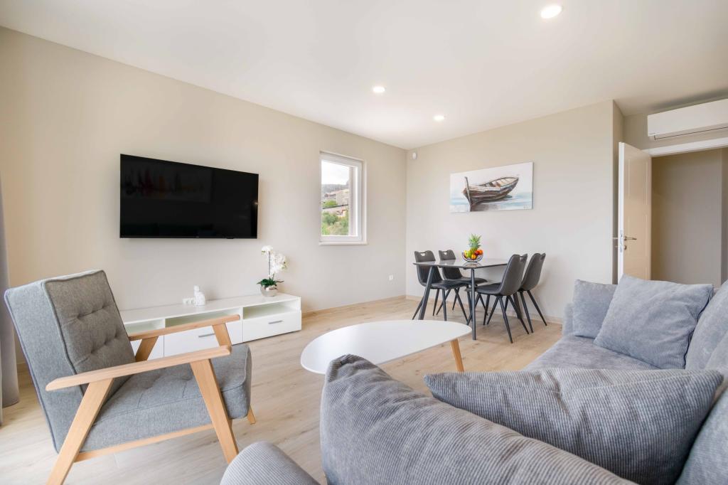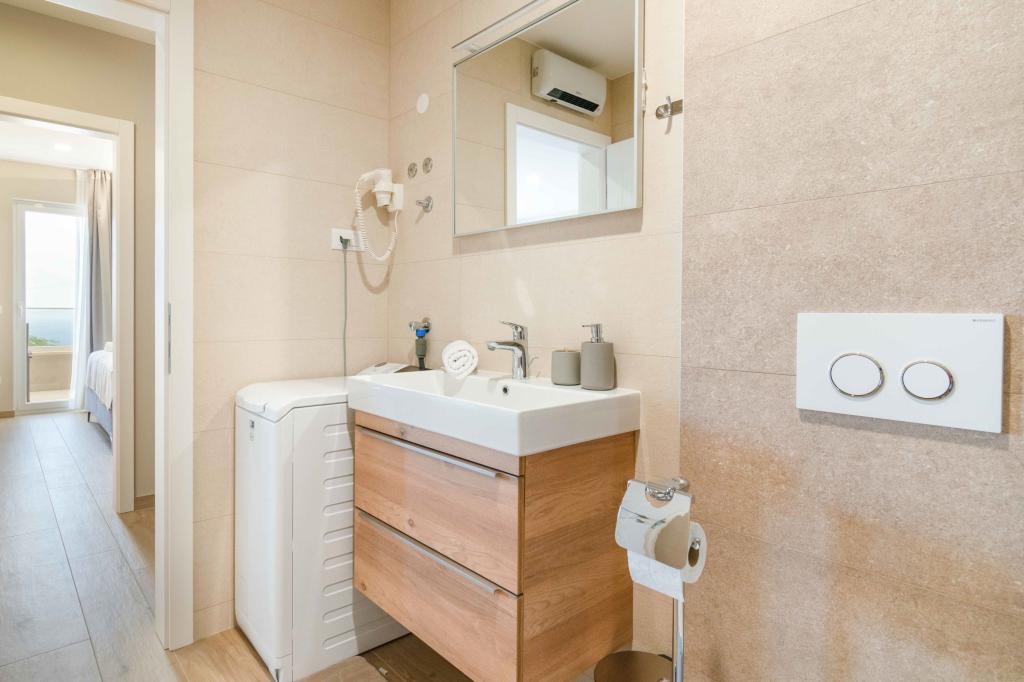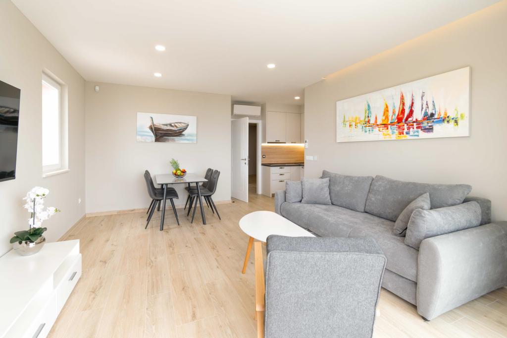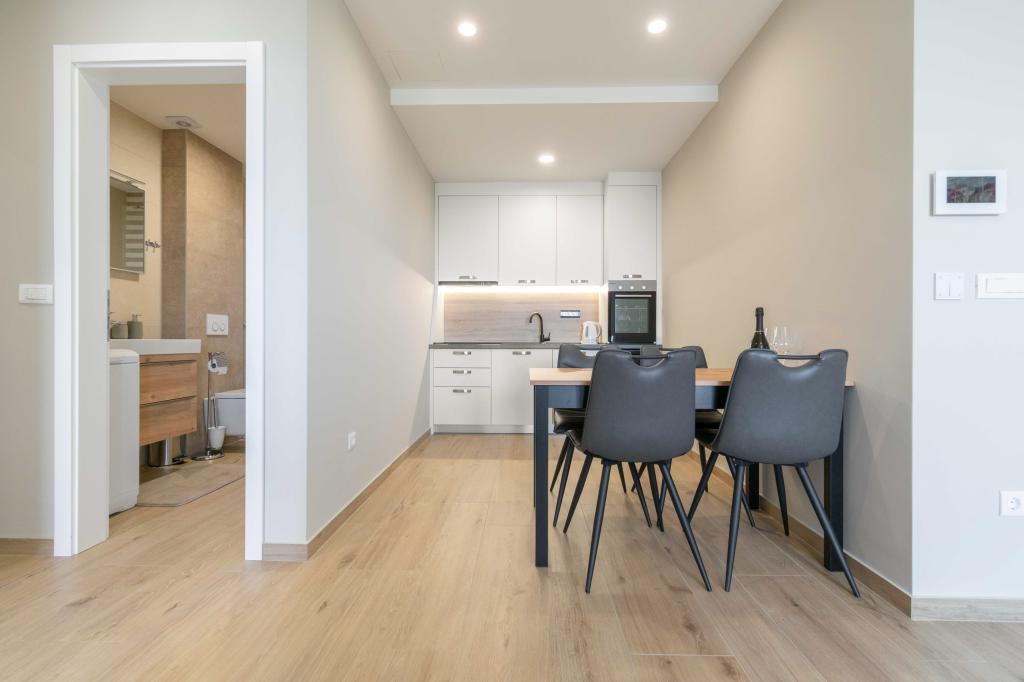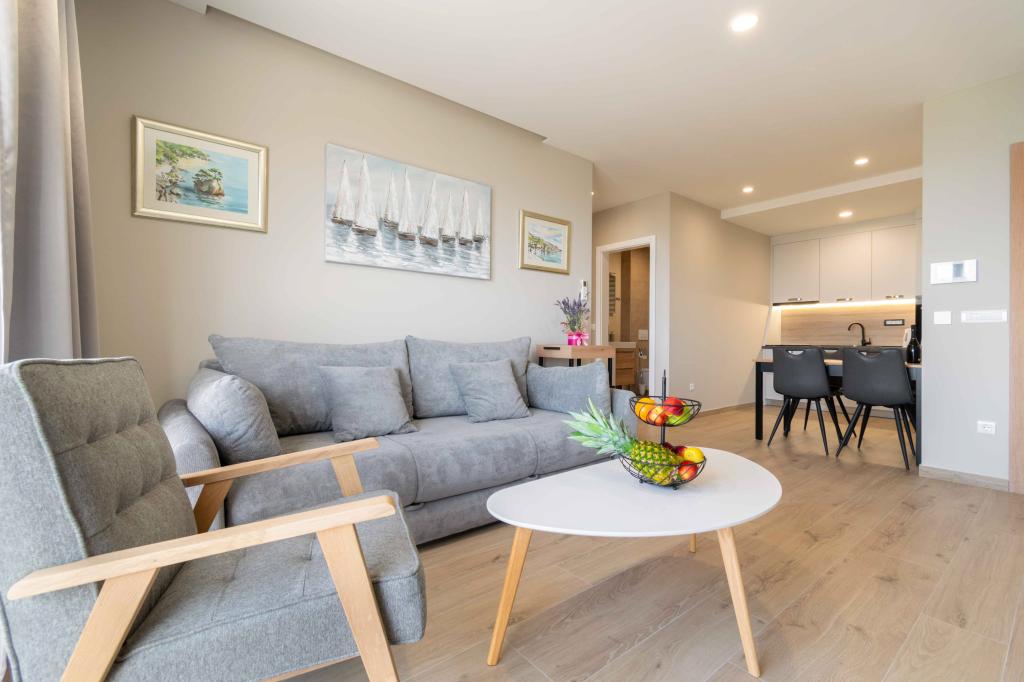 Moderní 2+2 apartmány s výhledem na moře v Makarské Moderní byt 50m². 1 ložnice, 1 koupelna, plně vybavená kuchyň. Krásný výhled na moře. K apartmánům patří parkovací stání před budovou. Domluvte si prohlídku ještě dnes a udělejte z tohoto bytu svůj nový domov.