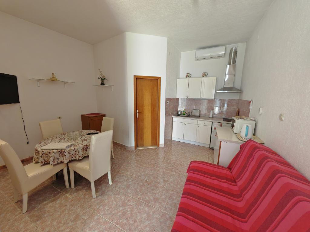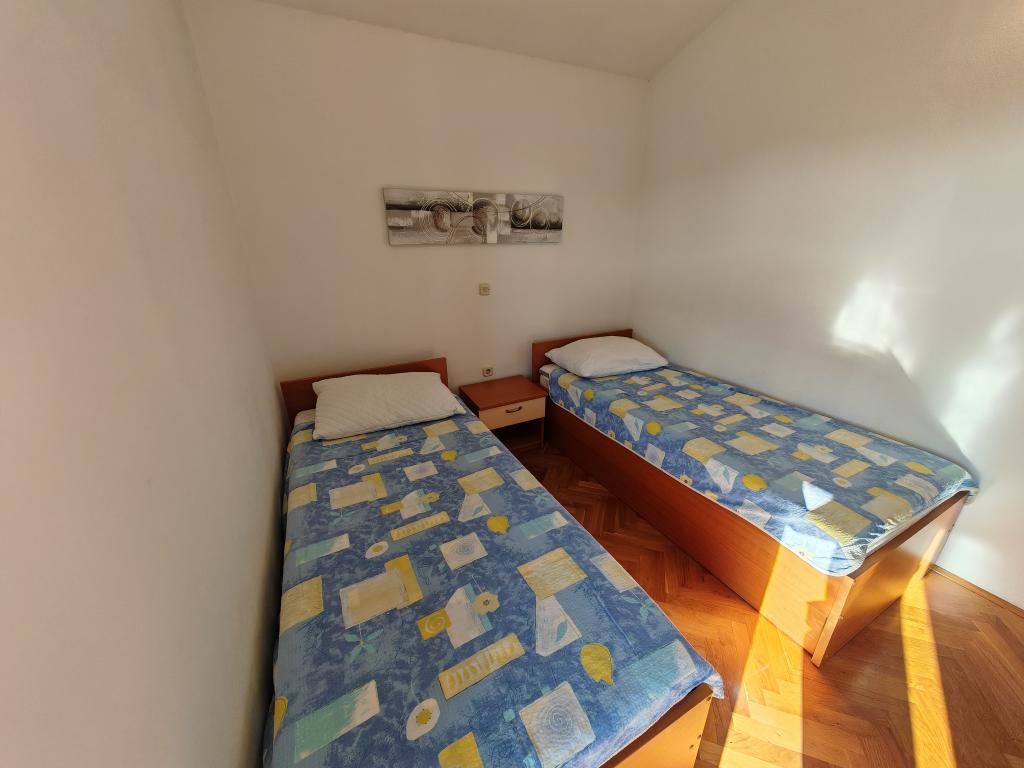 Apartmány v přízemí, v prvním a druhém patře apartmánového domu v bezprostřední blízkosti pláže, vzdálené přibližně 100 metrů. Každý apartmán má pěkný pohodlný balkon s výhledem na moře, bezplatné Wi-Fi, bezplatné parkovací místo před budovou. Apartmány jsou vhodné pro malé rodiny nebo pro 3 dospělé, pár s jedním nebo dvěma malými dětmi, s výjimkou apartmánu 5, který je vhodný pro 5 osob. Vynikající lokalita, vynikající vybavení jsou zárukou příjemné dovolené strávené v samotných apartmánech. Vzdálenost do centra města je přibližně 500 metrů, nebo 10-15 minut lehké chůze po promenádě podél pláže.