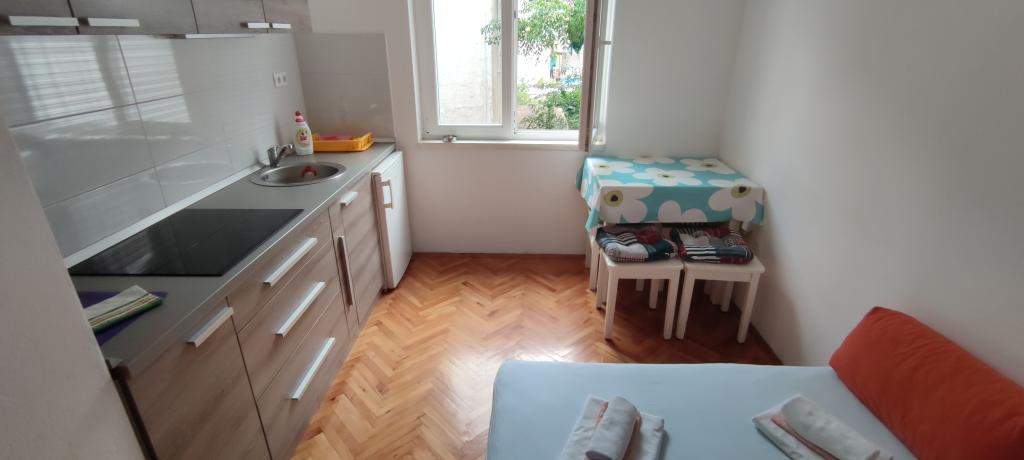 Bydleli jsme v A2 + 1, studio fantasticky vybaveném, na vysoké úrovni hygieny, hostitelé velmi laskaví a přátelští, klidná část města, velké plus pro parkování, které je jinak problém v Makarské, rychlý přístup na pláž, která je 50 m.