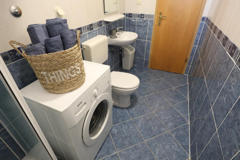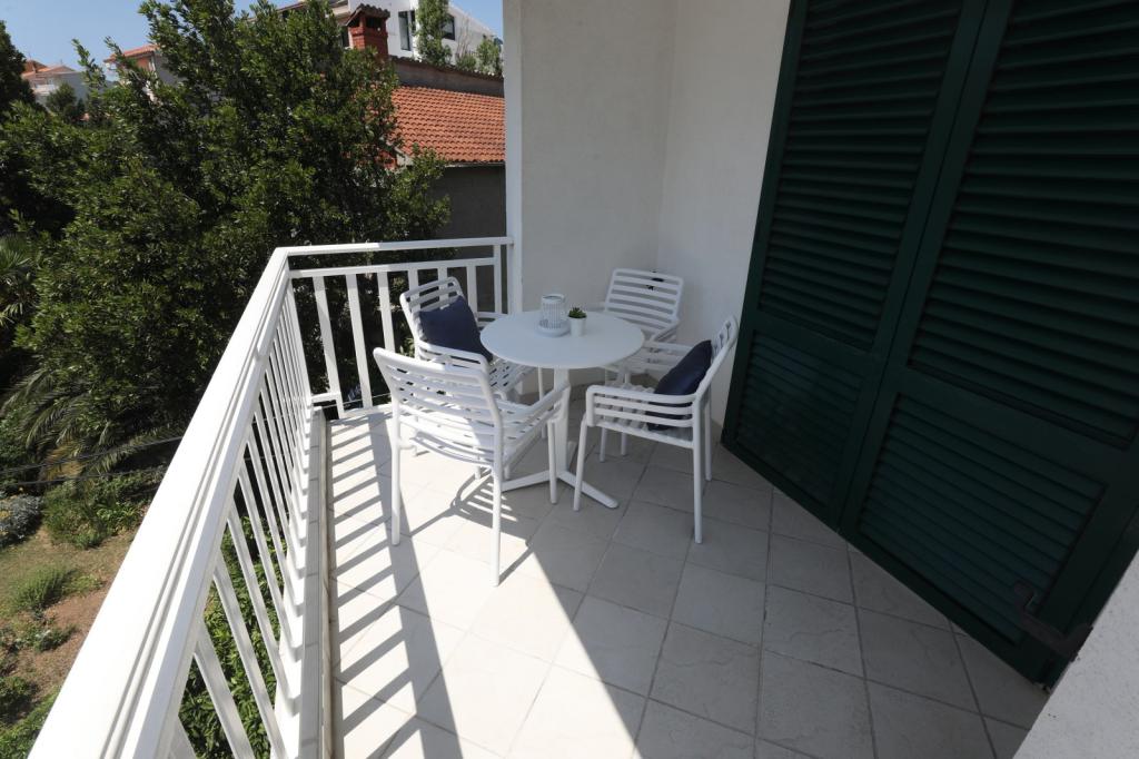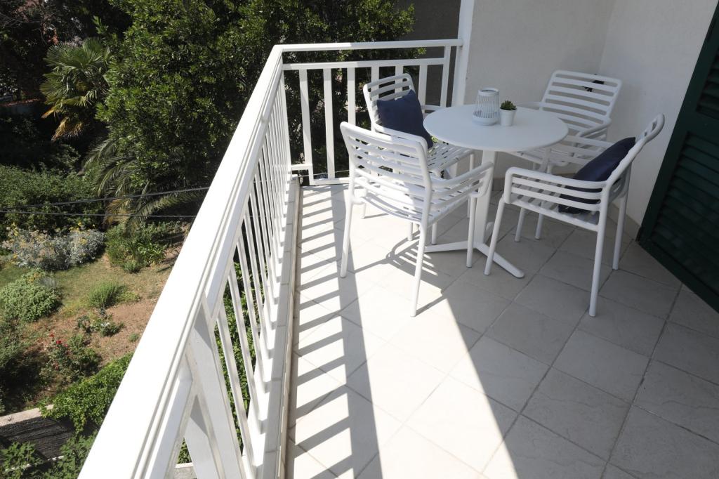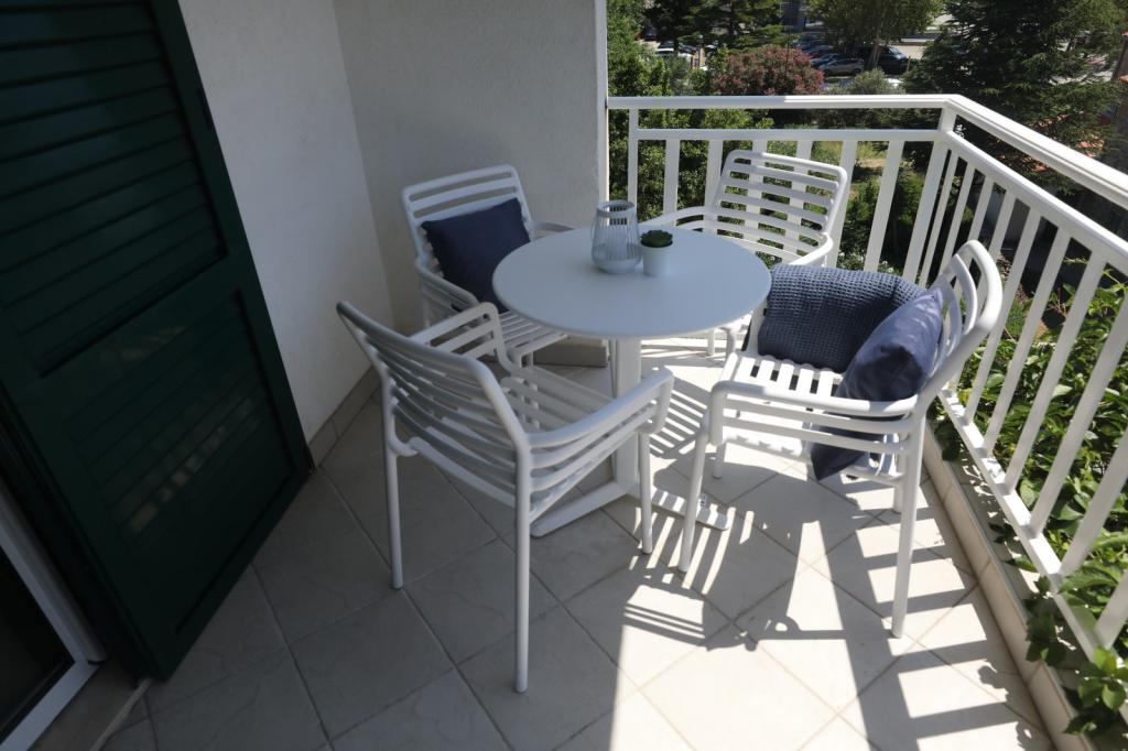 Opravdu skvělé!!! Vřele doporučuji! Komfortní, plně vybavený dvoupokojový byt s nádhernou velkou terasou, dům je na skvělém místě, jen 50m od pláže, bez lezení na pěší zóně, nádherný velký dvůr, parkovací místo... Ideální pro rodinnou dovolenou!