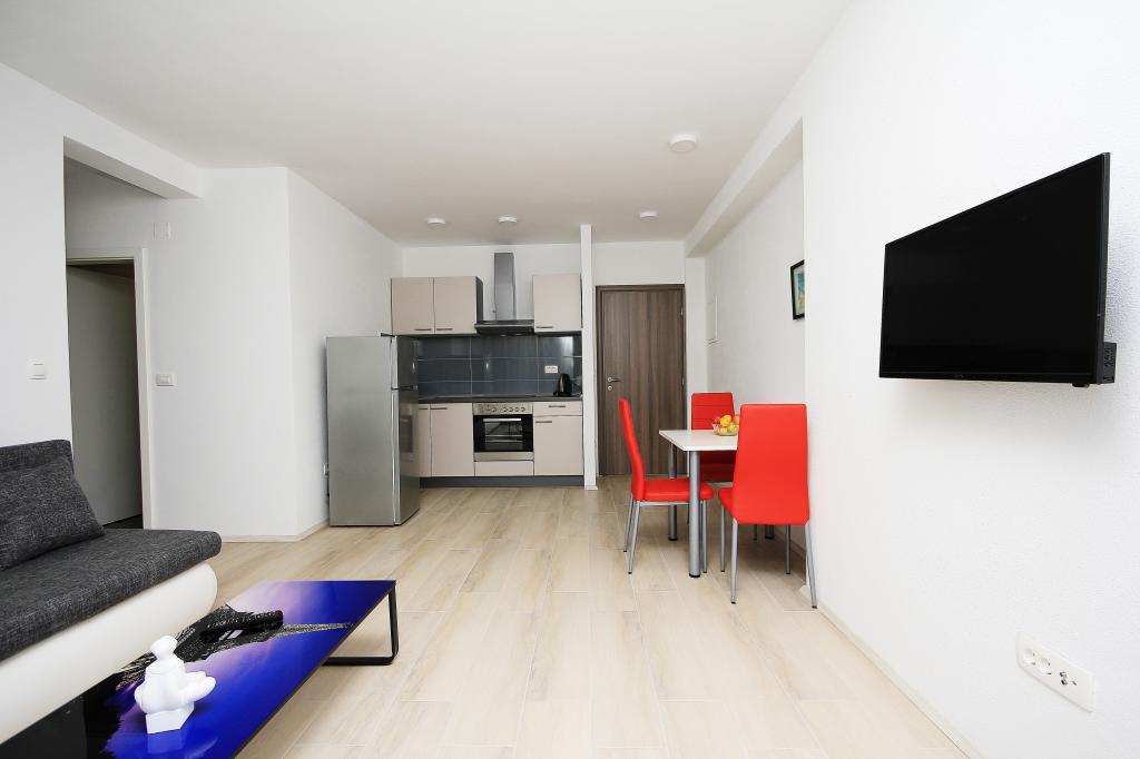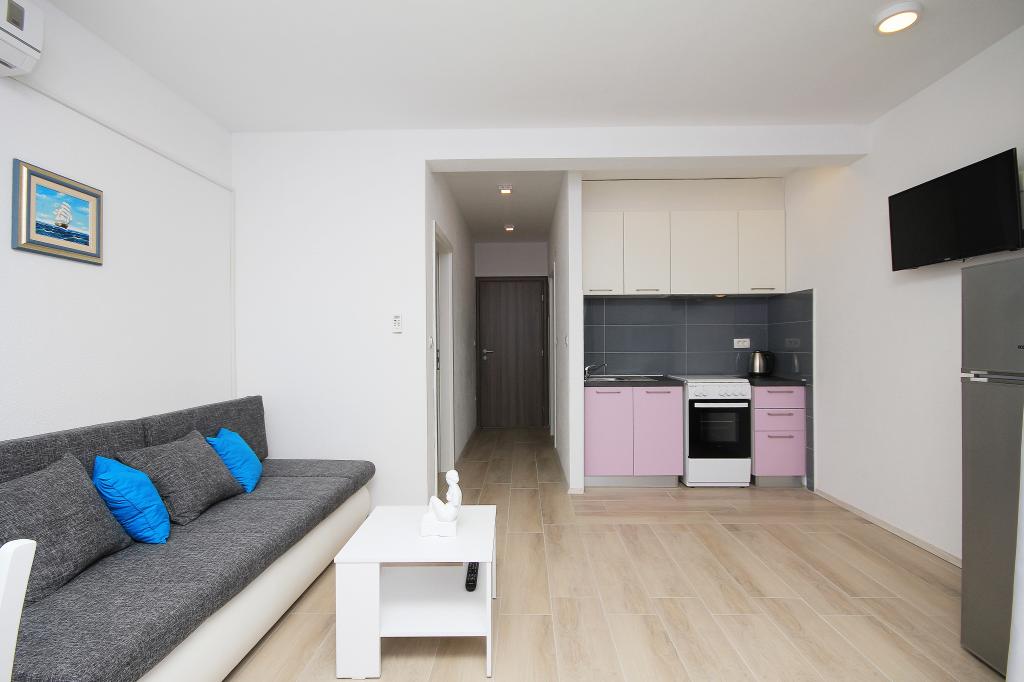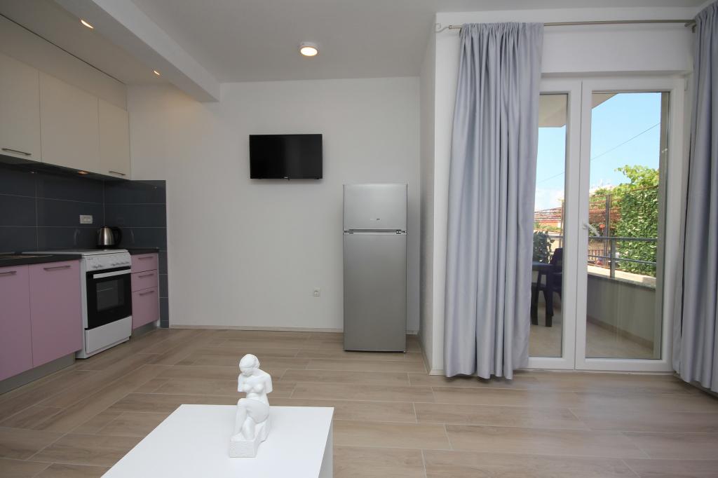 Byt se nachází v klidné části města, s parkováním zdarma, 2 minuty chůze od moře.Veškerá občanská vybavenost v blízkosti, jako je trh, tržnice, restaurace, pekárna, bankomat, lékárna.