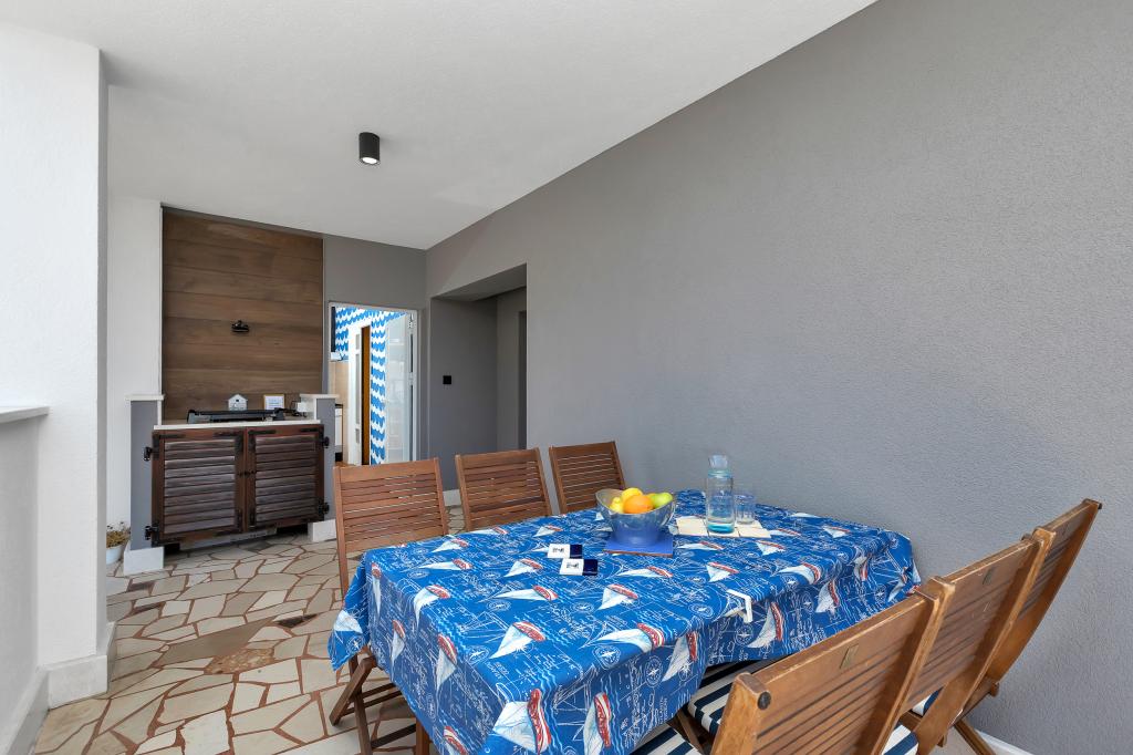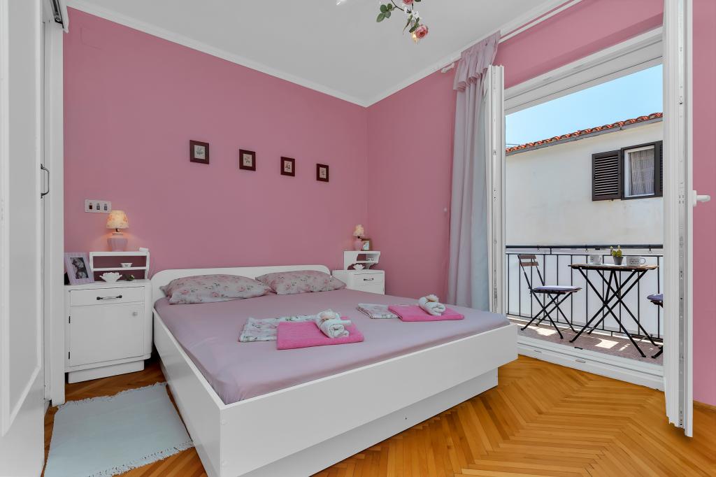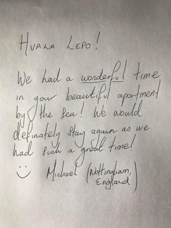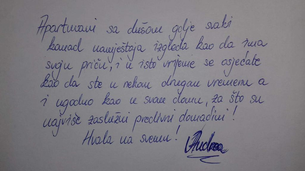 Stylové a komfortně zařízené apartmány v blízkosti starého města, centra města, přístavu, sportovního centra a přírodní pláže. Nachází se 5 minut chůze od centra města a 5 minut od nejbližší pláže v lesoparku Osejava. Rodinná tradice pronájmu bytů od roku 1968. Apartmány jsou pohodlné a prostorné, moderní a stylově vybavené. Nabízejí výhled na moře, ostrovy a horu Biokovo. Každý apartmán má velkou terasu o rozloze 20 m2 s jídelním stolem a elektrickým grilem. Parkovací místa pro hosty jsou zajištěna ve dvoře domu. Ideální a vhodné pro rodiny s malými dětmi, protože se nacházíme v klidné části města obklopené zelení. V blízkosti jsou lékaři, lékárny, tržiště a tržiště.