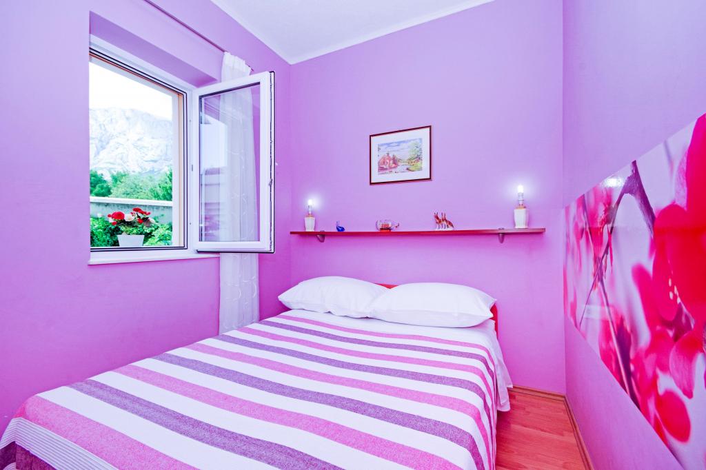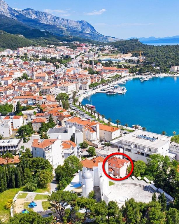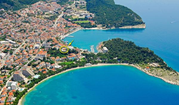 Apartmány se nacházejí v centru Makarské, pouhých 50 m od hlavní promenády RIVE a 100 m od písečné pláže. Zároveň je umístění klidné a tiché, izolované od denního provozu. Apartmány jsou obklopeny zelení, květinami a původními dalmatskými rostlinami (fíky, olivy, citron, pomeranče, mandarinky). Vzhledem k výhodné poloze není během pobytu v Makarské třeba auto. Byt je zcela nový s moderním interiérem. Můžete si také užít další vybavení každodenního života: satelitní / TV, DVD, klimatizace, neomezené používání bezdrátového internetu. Vítejte!