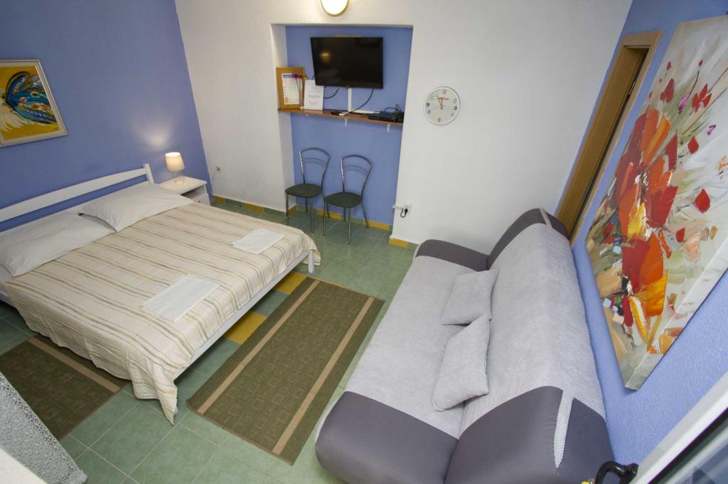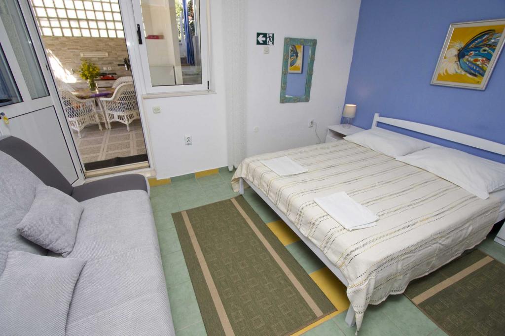 Krásný byt v přízemí. Majitel je velmi přátelský. Velmi dobře vybavený apartmán, nic nám nechybělo. Čistota je vynikající. Člověk se cítí jako doma. Paní má krásnou zahradu, která bytu dává stín, klimatizaci téměř nepotřebujete.