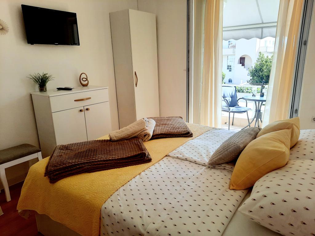 Apartmány Martina nabízí příjemnou dovolenou v rodinném domě 50 m od městské pláže a jen 300 m od centra města v klidném a zeleném prostředí. Byt je plně vybaven s možností využití grilu na dvoře domu, ze kterého si hosté rádi odnesou domů snítku rozmarýnu a vavřínu jako vzpomínku na teplé voňavé léto. Každý apartmán má své vlastní parkovací stání, které lze volně využívat ve dvoře domu a nachází se pod zelenými liány, které poskytují přirozený stín. Bude nám potěšením přivítat vás v našich apartmánech a pokusit se splnit všechna vaše očekávání.
