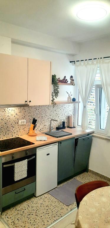 Extrémně pěkný a velmi čistý apartmán, vybavený vším potřebným pro pohodlný pobyt dvou osob, včetně miminka nebo malého dítěte. Pokoje jsou přesně takové, jak byly uvedeny v inzerátech. Manželská postel je dostatečně velká a velmi pohodlná s kvalitní matrací, kuchyň má vše pro ty, kteří si chtějí na dovolené vařit, dokonce i utěrku. Parkování je zajištěno ve dvoře. Lokalita je klidná. Pláž, kavárny, restaurace jsou vzdáleny asi padesát metrů, nábřeží a obchody jsou také blízko. Vše pro pět a korunou toho všeho jsou hostitelé Martina a Ante, úžasný manželský pár, který nás přivítal, jako bychom se znali už dlouho. Martina je vždy k dispozici, pokud cokoli potřebujete. Nezištně poskytuje všechny informace, ráda komunikuje s lidmi, ve skutečnosti je vidět, že vynakládá velké úsilí a lásku k tomu, aby se každý host vrátil domů s velkou spokojeností. Martino, děkuji za ten obrovský kus tvého dortu a za poskytnutou "první pomoc" při zranění. A musím také zmínit krásného, mazlivého kocoura Peru, maskota apartmánu.