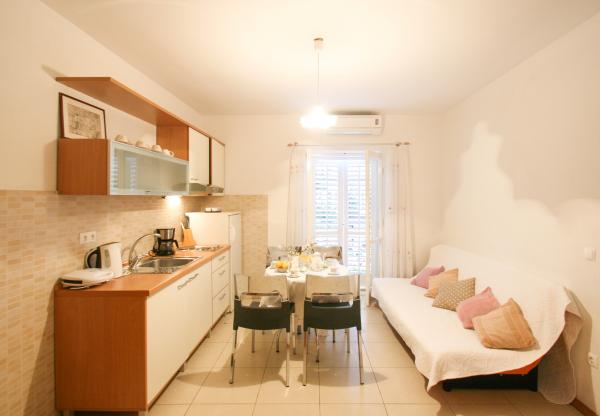 Rodinný dům s apartmány se nachází v klidné rezidenční čtvrti Makarské, v blízkosti písečné pláže a hotelu Dalmácie a Biokovka. Vzdálenost od centra města je 10 min procházky u moře.