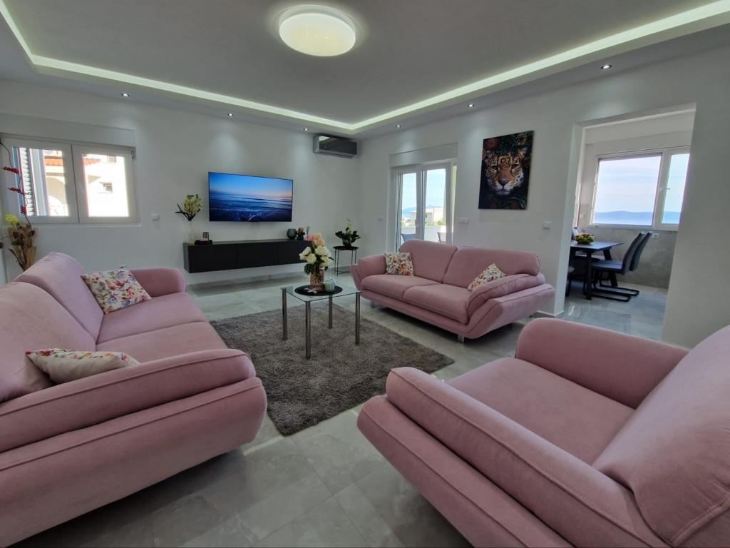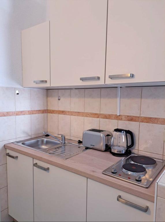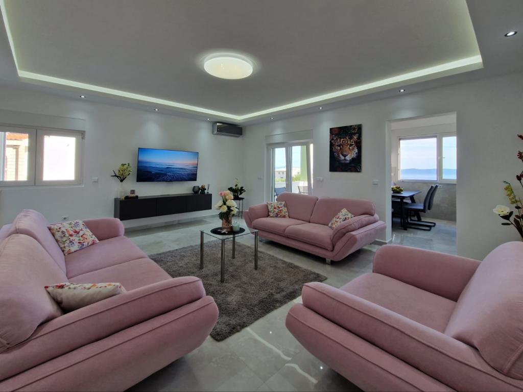 Nabízíme několik apartmánů a studio apartmánů. Apartmány a studio apartmány jsou dvoulůžkové, třílůžkové a čtyřlůžkové. Každý apartmán a studio apartmán má klimatizaci, balkon, plně vybavenou kuchyň, koupelnu, TV a Wi-Fi. Ceny začínají od 35 € na osobu a závisí na vybraném apartmánu. Výhoda: blízkost nejkrásnějších pláží na Makarské riviéře, bez nutnosti vstupovat do městských davů. Všechny nejkrásnější pláže se nacházejí přímo pod námi a nepotřebujete k nim ani 2 minuty jízdy autem. Nacházíme se asi 1 km od první a jedné z nejkrásnějších pláží v Makarské. Cesta autem trvá asi 2 minuty. Pod námi se nacházejí jedny z nejčistších a nejkrásnějších pláží v Makarské. Pláže v okolí: pláž Buba, pláž Biloševac ️ pláž Cubano ️ pláž Cvitačka ️ Jsme asi 300 m od prvního obchodu, řeznictví a kavárny, 100 m od první restaurace. Hosté mají k dispozici bezplatné parkování přímo před domem.