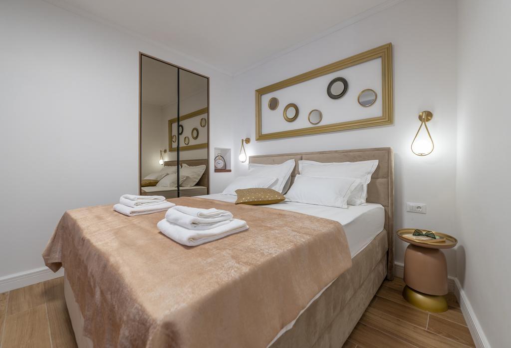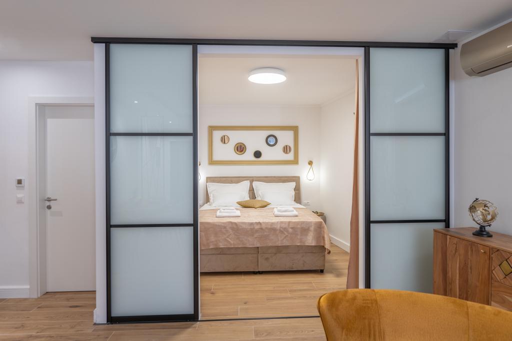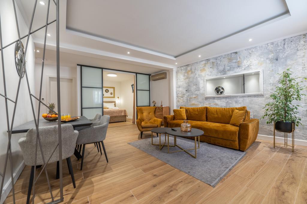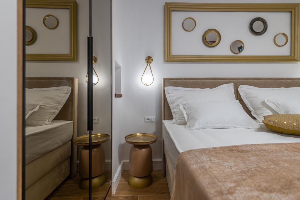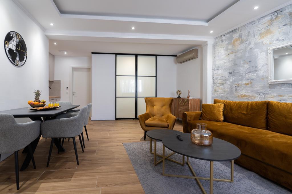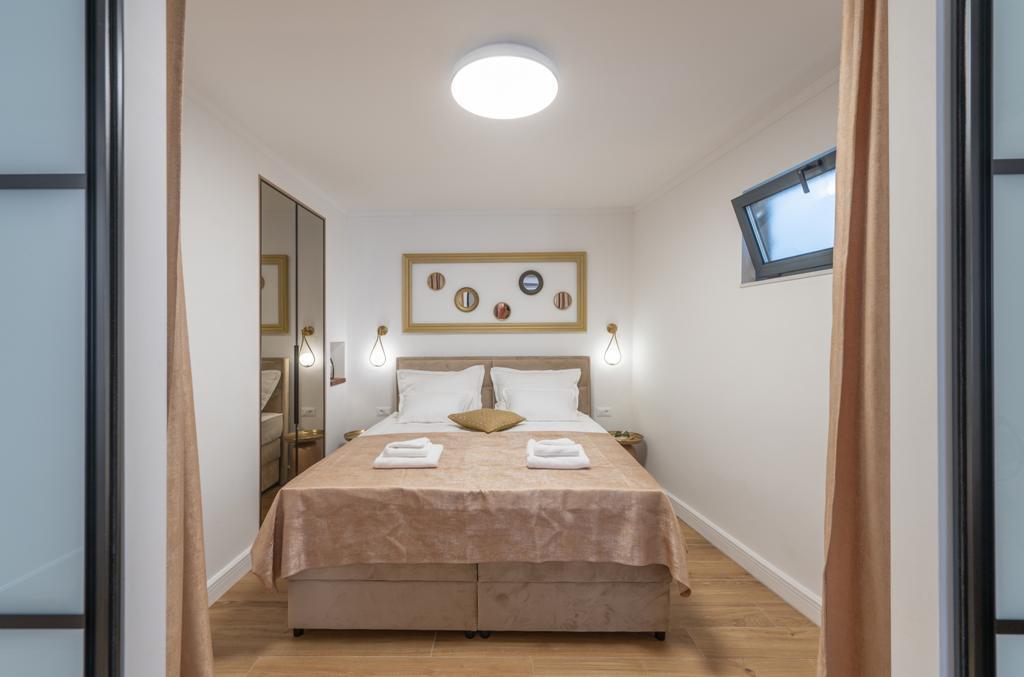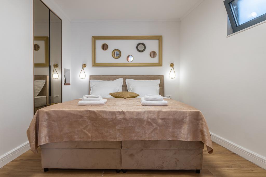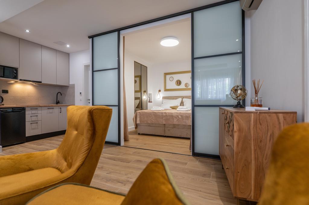 Apartmán "Petra" a Apartmán Rustic se nachází ve velmi atraktivní lokalitě v centru města s minimálním hlukem města. Apartmány jsou obklopeny veškerým důležitým vybavením pro jednoduchý a příjemný pobyt. Městské vlakové nádraží je jen dvě stě metrů od apartmánů. Na stejné ulici jsou dva supermarkety a naproti apartmánům je slavná drogerie "DM" Ve stejném směru jsou četné restaurace, které nabízejí tradiční a mezinárodní kuchyni, a co je nejdůležitější, pláž je naproti apartmánům. Byt na Staroměstském náměstí je samostatný a nachází se v jiné lokalitě, přesněji v samém srdci města. Kačićovo náměstí.
