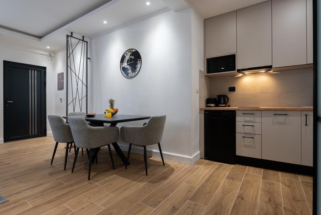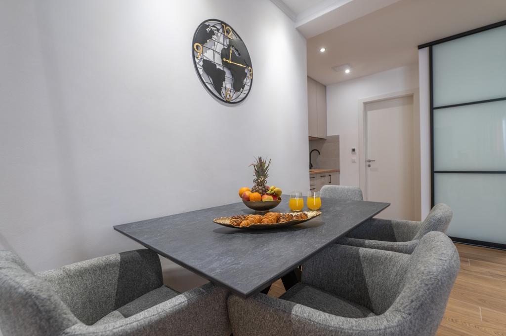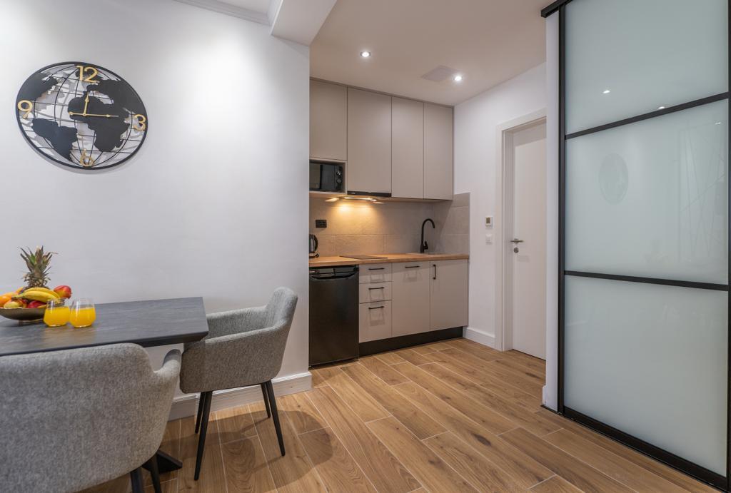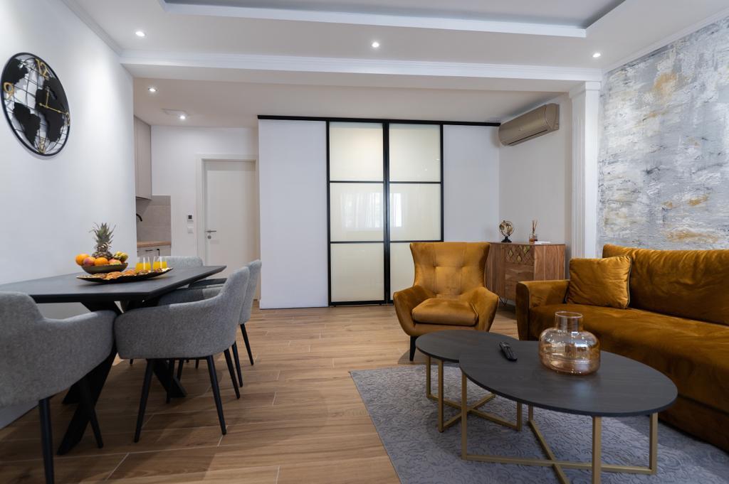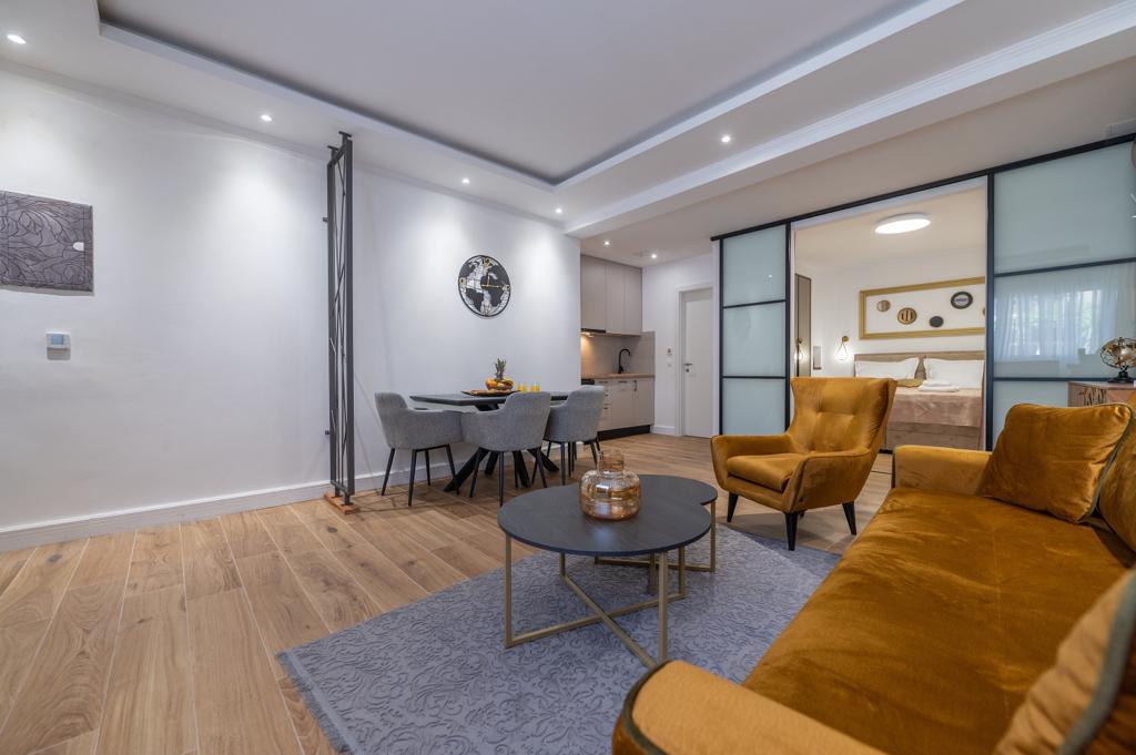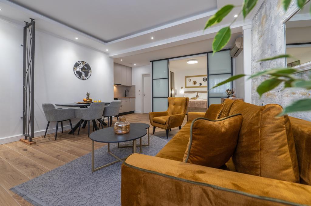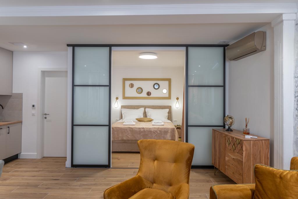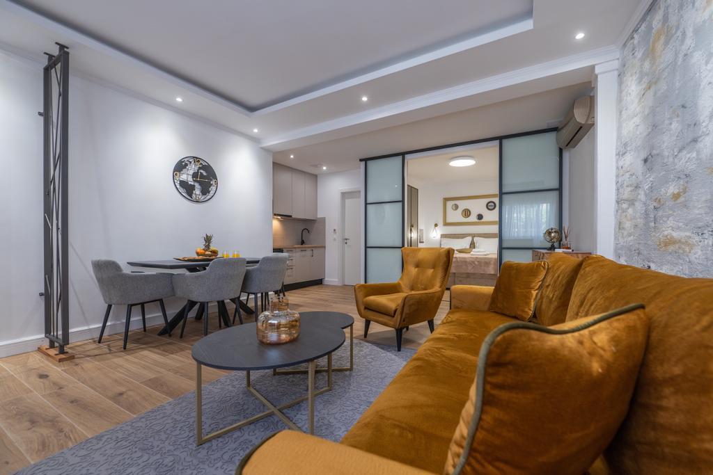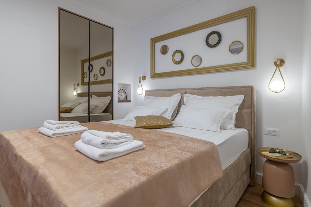 Apartmán "Petra" a Apartmán Rustic se nachází ve velmi atraktivní lokalitě v centru města s minimálním hlukem města. Apartmány jsou obklopeny veškerým důležitým vybavením pro jednoduchý a příjemný pobyt. Městské vlakové nádraží je jen dvě stě metrů od apartmánů. Na stejné ulici jsou dva supermarkety a naproti apartmánům je slavná drogerie "DM" Ve stejném směru jsou četné restaurace, které nabízejí tradiční a mezinárodní kuchyni, a co je nejdůležitější, pláž je naproti apartmánům. Byt na Staroměstském náměstí je samostatný a nachází se v jiné lokalitě, přesněji v samém srdci města. Kačićovo náměstí.