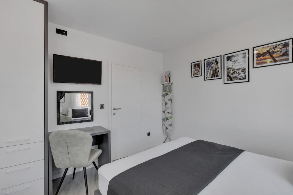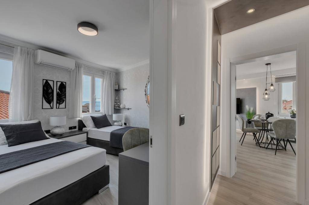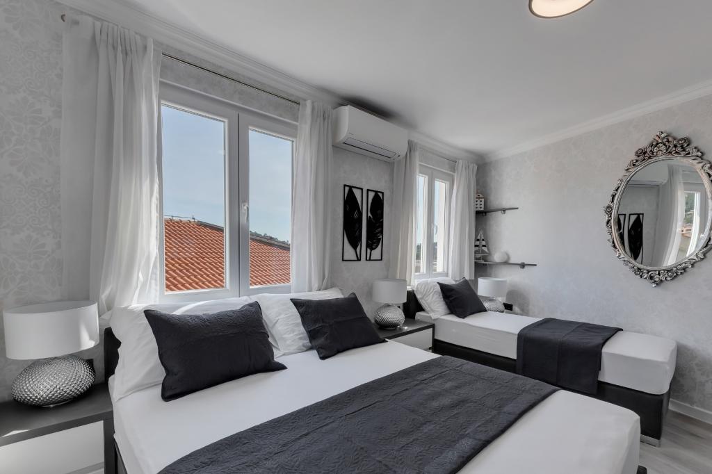 Kompletní, luxusní byt 80 m2 ve 2. patře rodinného domu s možností parkování, byt se skládá ze 3 ložnic ložnic 2 koupelny kuchyň, obývací pokoj s přístupem na balkon.Apartman je vybavena myčkou, pračkou, velký fližderom s mrazákem, trouba, mikrovlnná trouba trouba, kávovar, 2 LCD TV, DVD, satelit s programem 3000, počítač s bezplatným připojením na internet, klimatizace ,, apartmánu se mohou ubytovat maximálně 8 osoba.Apartman se nachází ve východní části města 400m od pláže Osejava a centra města, 200 m od sportovního centra a supermarketu Lidl, 4oo v klidné části 0,5 minuty chůze od centra města a 10 minut chůze na pláž