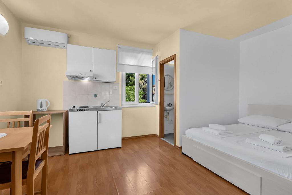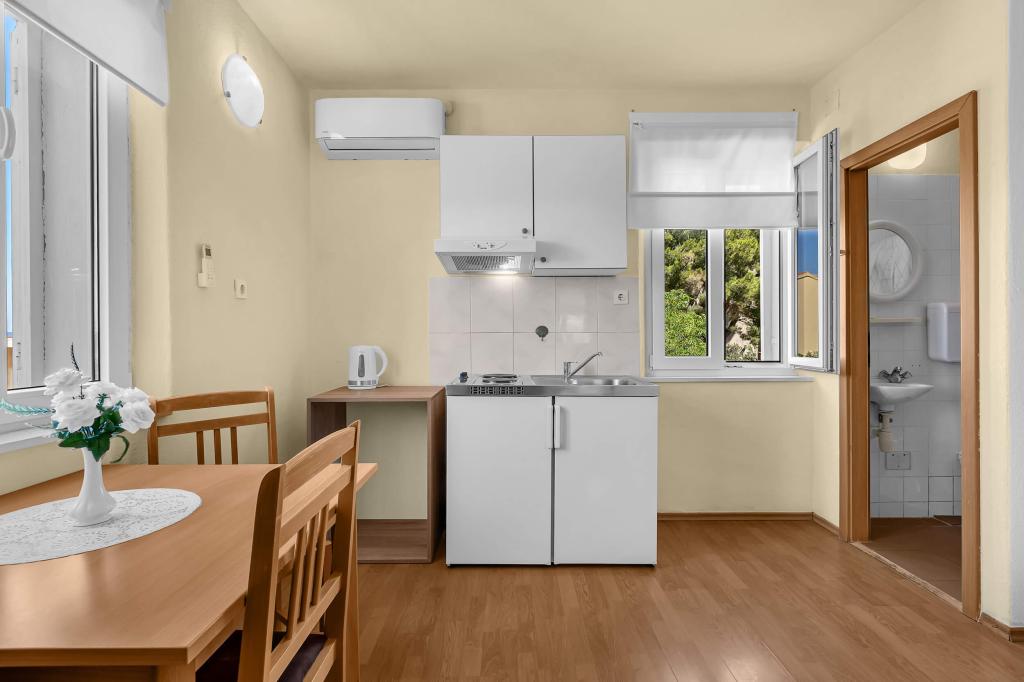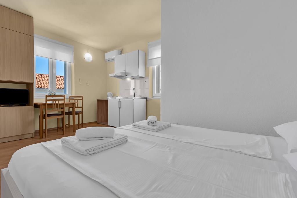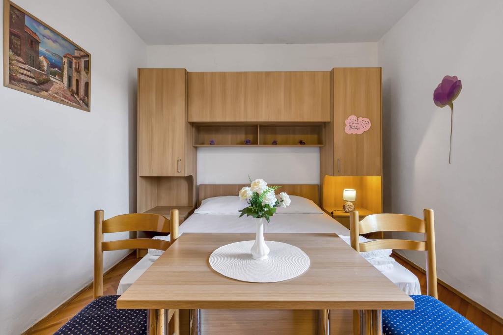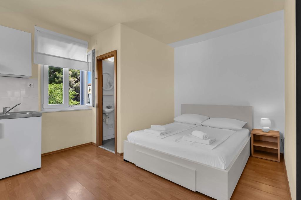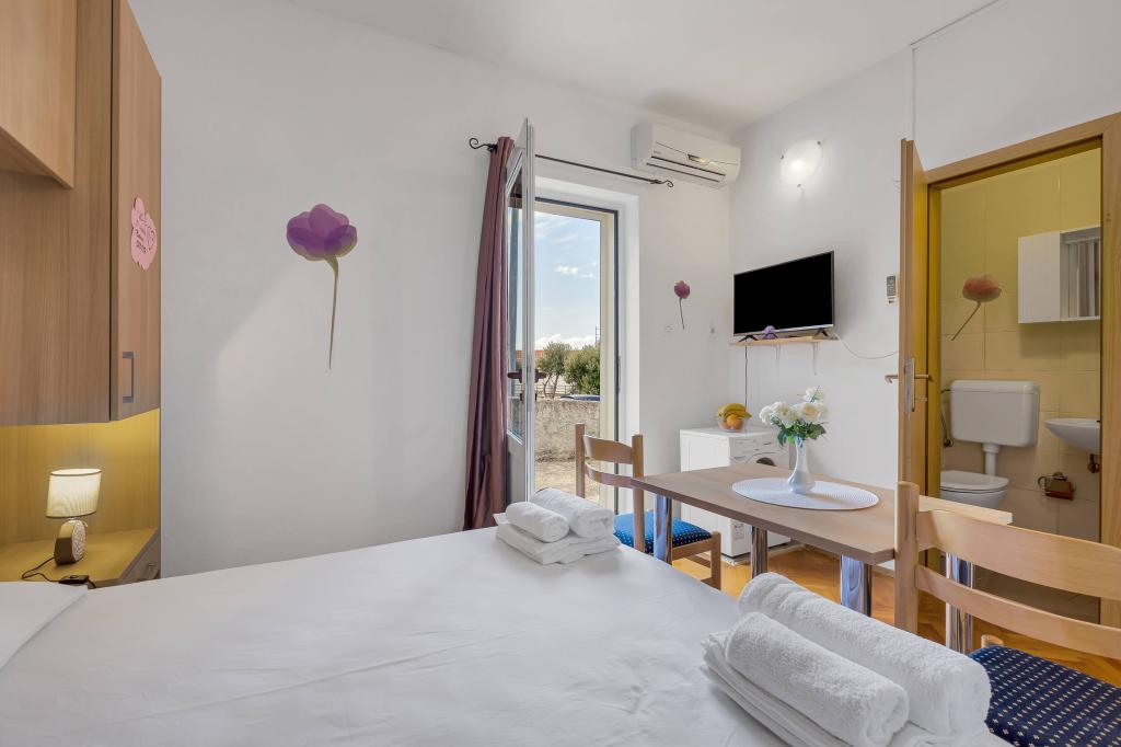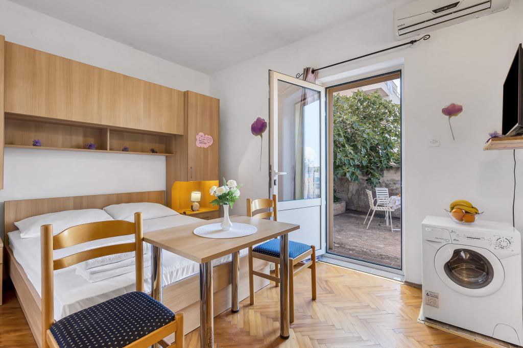 Dům se 4 studiovými apartmány. Nachází se v blízkosti všech hlavních zařízení, hlavní náměstí 300 m, trh 300 m, pláž 700 m, hlavní promenáda (riva 350 m).