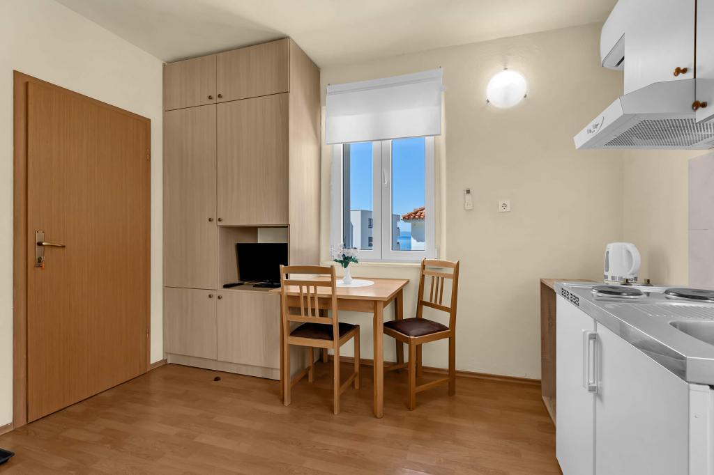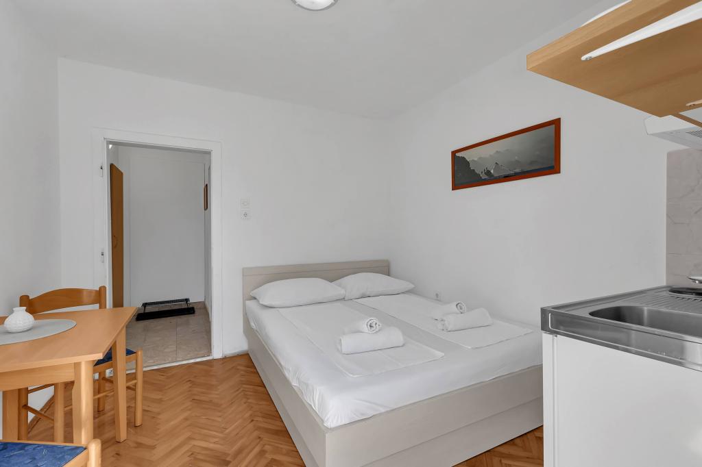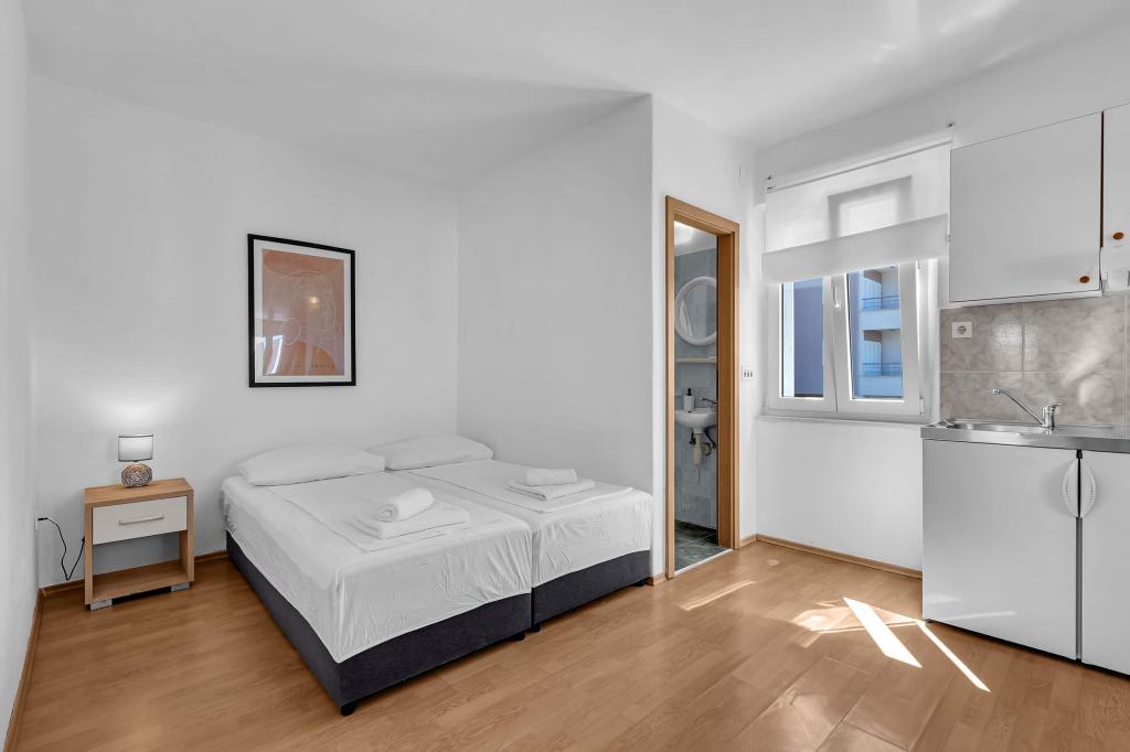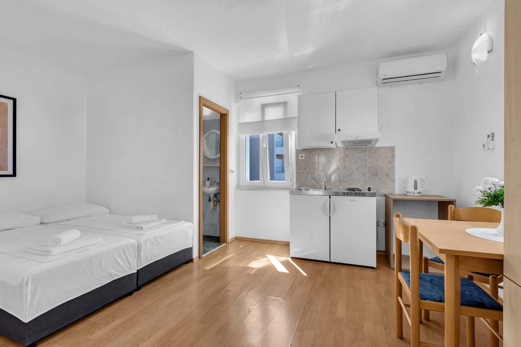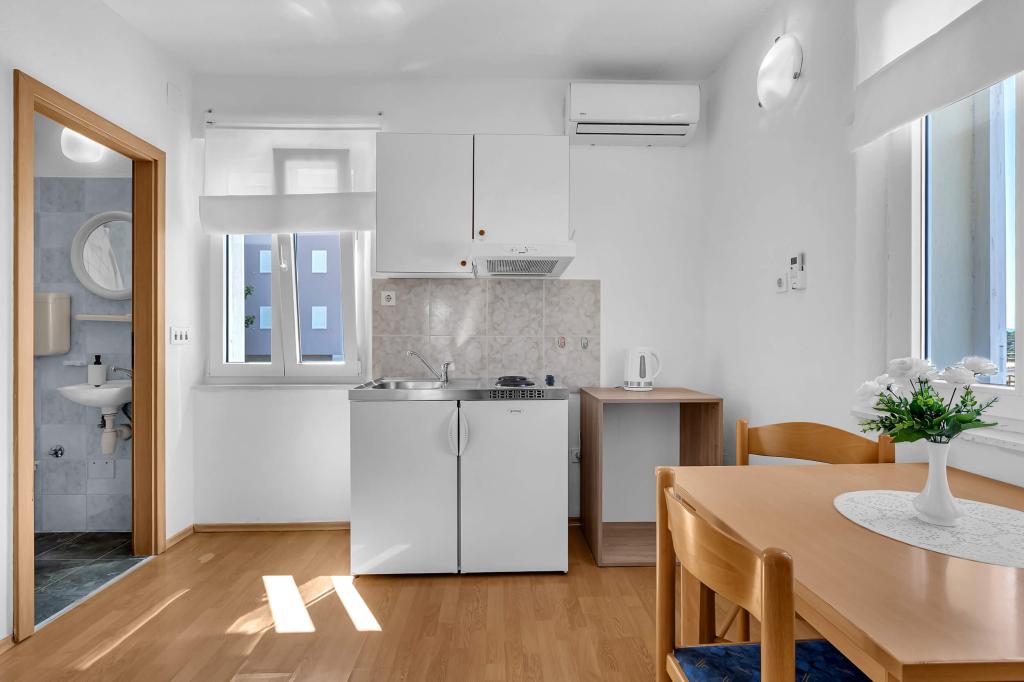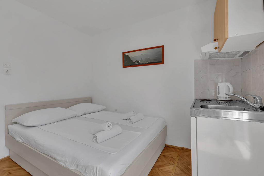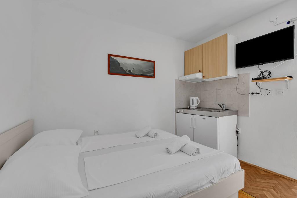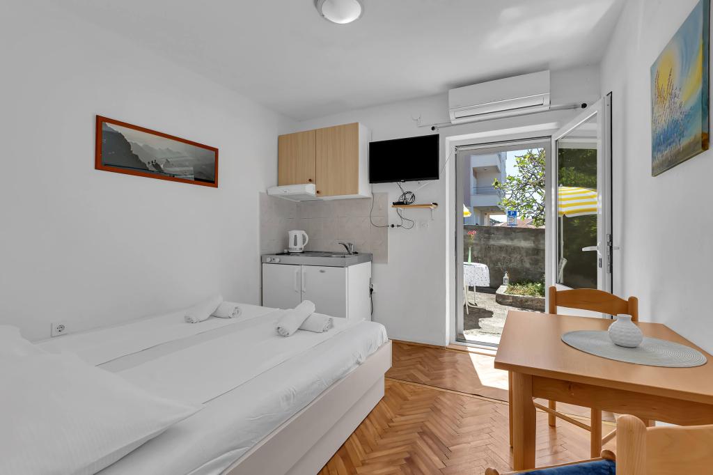 Dům se 4 studiovými apartmány. Nachází se v blízkosti všech hlavních zařízení, hlavní náměstí 300 m, trh 300 m, pláž 700 m, hlavní promenáda (riva 350 m).