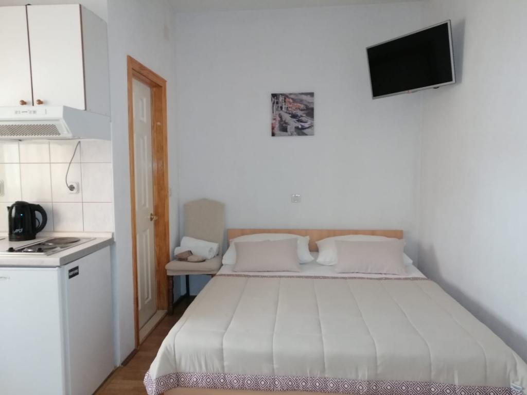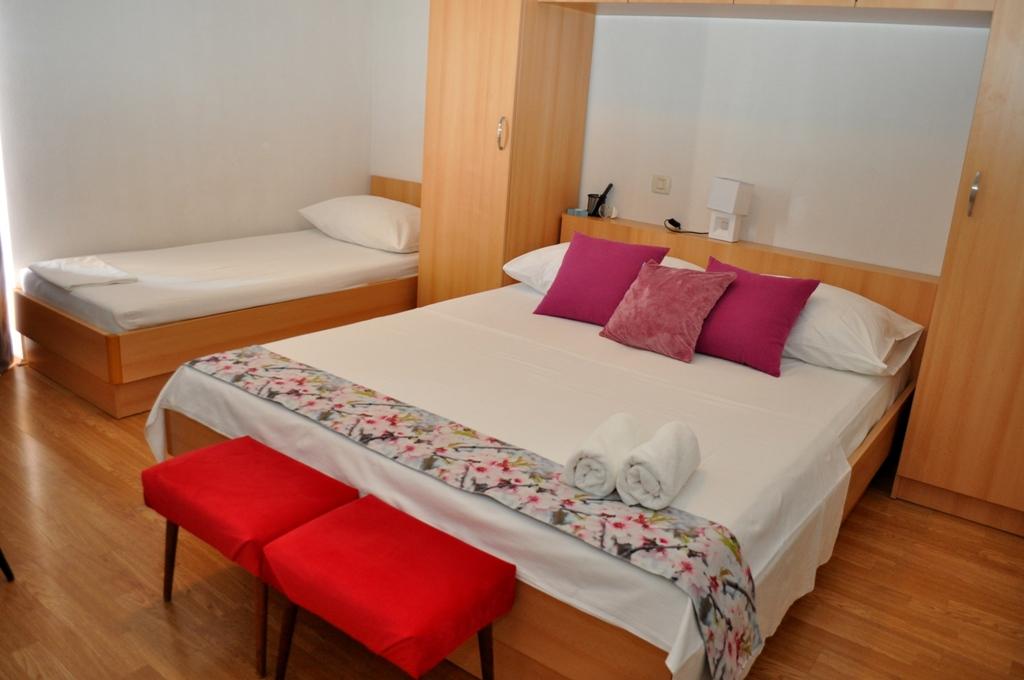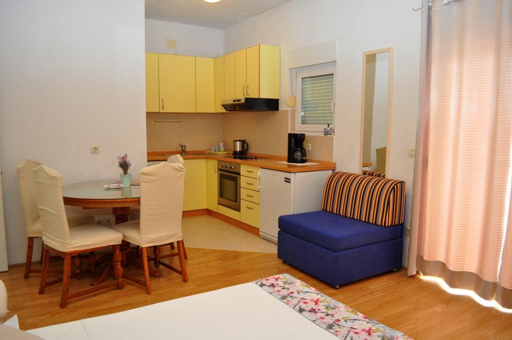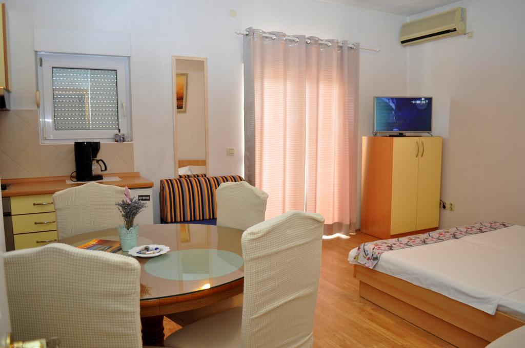 Apartmány Veselko se nacházejí v klidné části Makarské, v oblasti Zelenka. Ve druhém patře rodinného domu máme 4 ubytovací jednotky (2 jižní s balkonem a výhledem na moře, 1 severní s balkonem a výhledem na hory a 1 severní s terasou a výhledem na pohoří Biokovo a částečně na moře). Vše je plně vybaveno: manželské postele (+ další 200x90 cm), mini kuchyňka, koupelna, klimatizace, smart TV + satelitní TV, internet. Bezplatné parkování pro všechny hosty, které se nachází za domem. Pouze 8 minut na pláž a 15-20 minut chůze do centra.