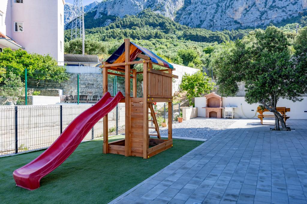 Apartmány Villa Frane se nacházejí v Makarské, v klidné a dobře udržované čtvrti na mírném kopci nad městem. Jsou vzdálené pouhých 10 minut chůze od malebného centra města, což z jejich lokality činí dokonale vyváženou - dostatečně klidné pro relaxaci, a přesto blízko všech služeb, které Makarska nabízí. Bezplatné parkování v blízkosti pláže je zahrnuto v ceně pronájmu! Vítejte v moderních a plně vybavených apartmánech se dvěma ložnicemi, ideálních pro rodiny, páry nebo přátele, kteří chtějí pohodlné ubytování v jedné z nejkrásnějších destinací na Jadranu. Objekt se nachází asi 1,5 km nad centrem a hostům poskytuje klid, soukromí a krásný výhled na okolí. Hosté mají také přístup k dalším vymoženostem, které jim pobyt ještě více zpříjemní: Výtah v objektu, Venkovní parkovací místo pro každý apartmán, Dětské hřiště - ideální pro nejmenší, Společný gril pro socializaci a užívání si přírody. Perfektní volba pro vaši dovolenou v Makarské. Bezplatné parkování v blízkosti pláže je zahrnuto v ceně pronájmu!