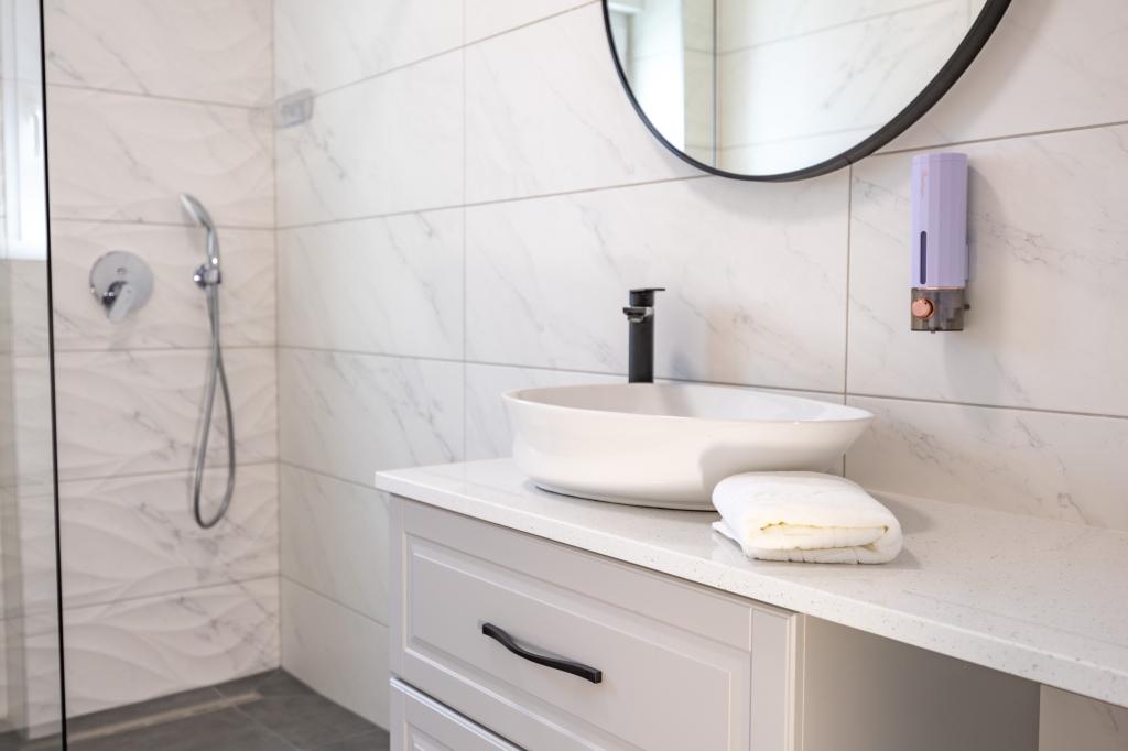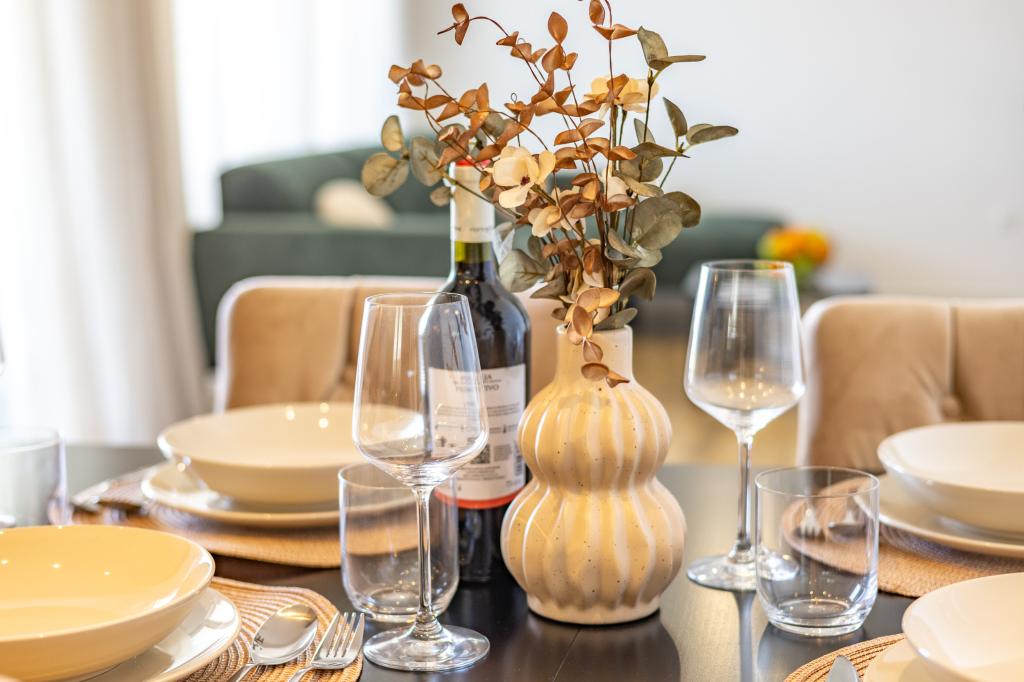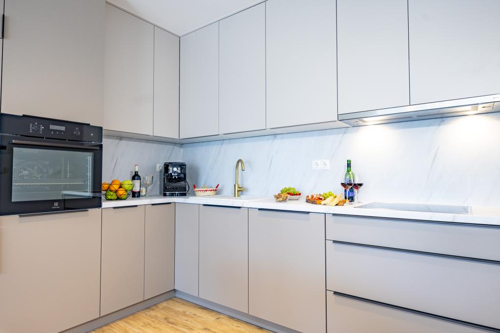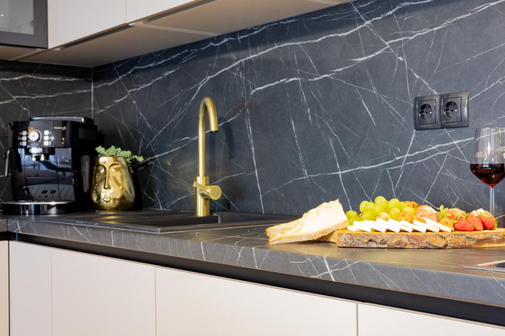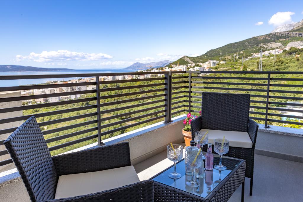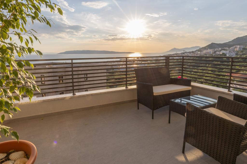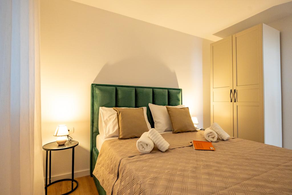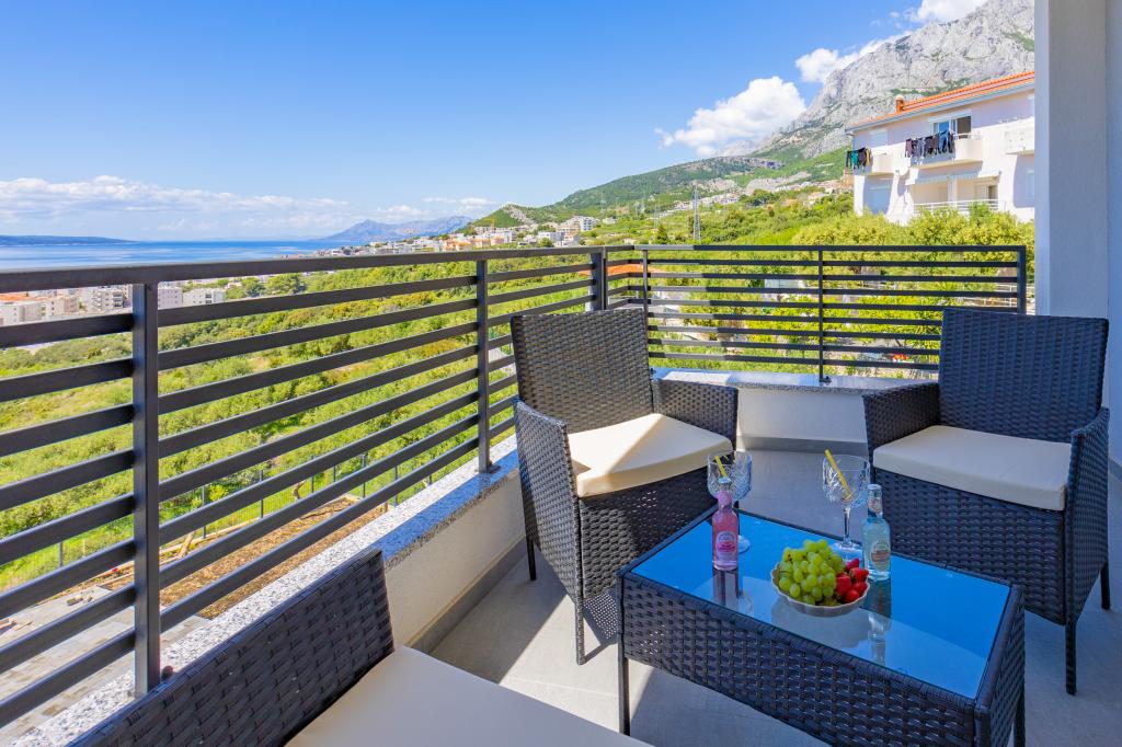 Každý apartmán vyzařuje moderní design a nově zrekonstruovaný interiér. V prostorném obývacím pokoji, zařízeném vkusným nábytkem a moderními detaily, se budete cítit jako doma. Otevřený koncept přirozeně propojuje obývací pokoj s plně vybavenou kuchyní, kde na vás čekají elegantní pracovní desky, kvalitní spotřebiče a veškerý prostor potřebný k přípravě vašich oblíbených jídel. Obývací část se otevírá na příjemný balkon - ideální místo pro ranní kávu nebo večerní relaxaci se sklenkou vína a nezapomenutelným západem slunce nad Jadranem. Každý apartmán má dvě pohodlné ložnice s manželskými postelemi, vybavené měkkým ložním prádlem a dostatkem úložného prostoru, jednu moderní koupelnu a další toaletu. Apartmány jsou klimatizované a plně vybavené: TV/SAT, internet, pračka, myčka nádobí, kávovar a vše, co potřebujete pro pohodlný a bezstarostný pobyt. Bezplatné parkování v blízkosti pláže je zahrnuto v ceně pronájmu!