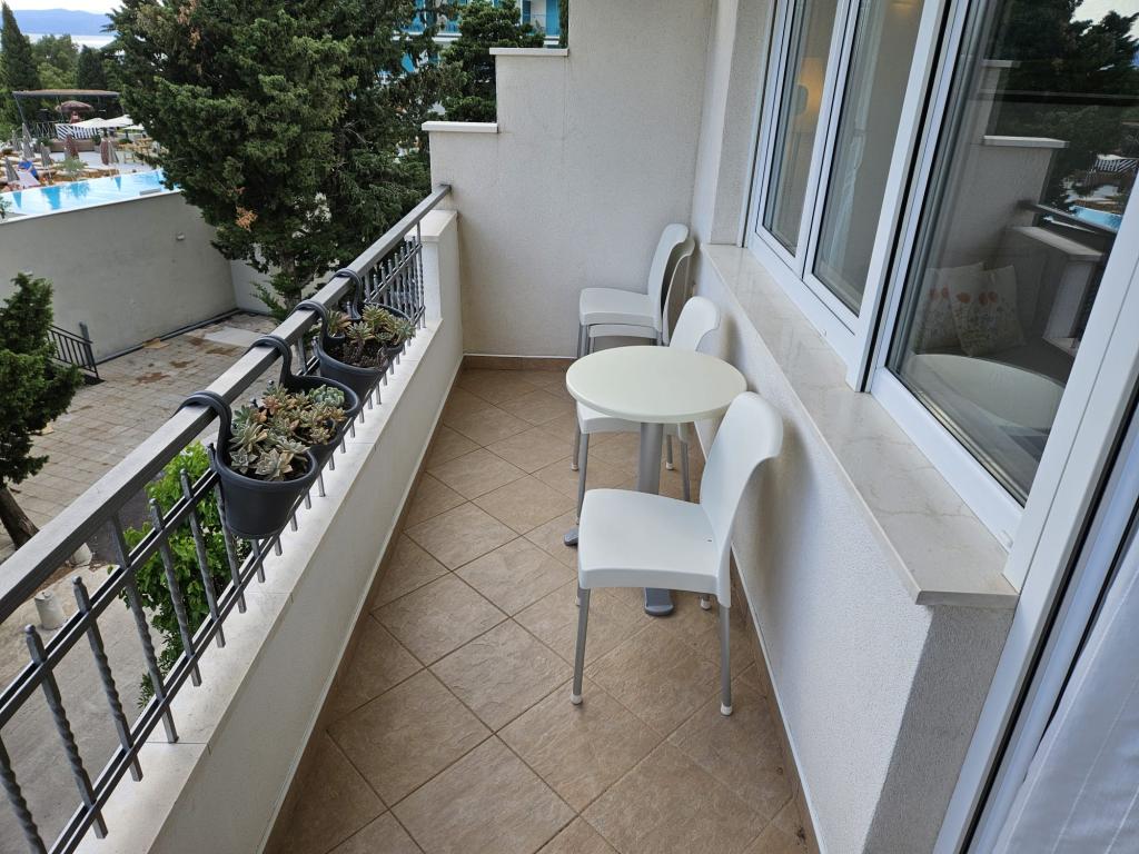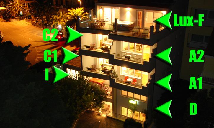 Naše apartmány jsou moderní a plně vybavené, aby byl váš pobyt co nejpohodlnější a bezstarostnější. Každý apartmán zahrnuje žehličku a žehlicí prkno, fén, kávovar na filtrovanou kávu, varnou konvici a mikrovlnnou troubu. Hosté mají také k dispozici kompletní nádobí pro přípravu a servírování jídla. Všechny ubytovací jednotky mají plochou televizi, bezplatné Wi-Fi, vnitřní i venkovní posezení a relaxační zóny. Ubytovací jednotky jsou klimatizované. Parkování je nutné rezervovat předem z důvodu omezeného počtu parkovacích míst v objektu. Při příjezdu na vás čeká čerstvé ložní prádlo a ručníky, které se mění dle dohody. Dětská postýlka je v tomto objektu k dispozici po předchozím upozornění a je zdarma. V objektu se nachází společný dvůr s posezením, obklopený středomořskými rostlinami - ideální místo k relaxaci. Objekt se nachází v klidné oblasti, ve druhé řadě od moře, jen 2 minuty chůze od pláže a deset minut snadné chůze do centra.