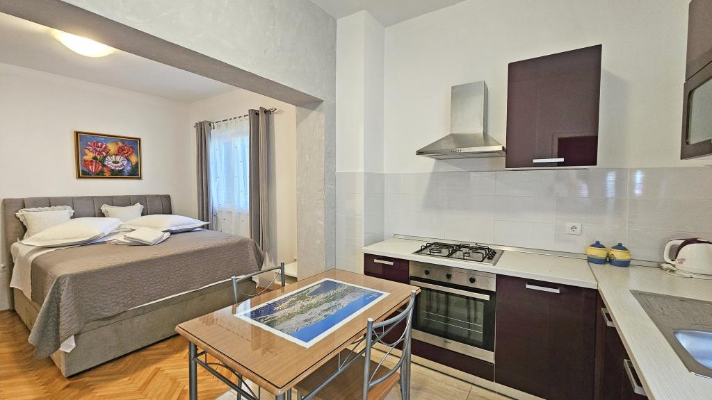 Ubytovací jednotky v objektu byly kompletně zrekonstruovány. Dům se nachází pouhých 300 metrů od pláže Biokovka. Máme soukromé parkoviště 1 m od domu.