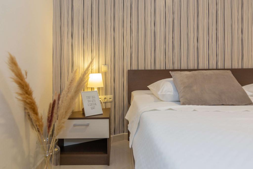 Pokoj je čistý a uklizený, čerstvě vymalovaný, ale menší než 17 m2. Naštěstí je terasa velká, skoro jako pokoj. Během pobytu se mění pouze ručníky. Budova má vlastní parkoviště, ale bylo nám přiděleno parkovací místo 300 m daleko. Je to asi 500 m od moře, ale je velmi strmé. Majitelé jsou kultivovaní a přátelští.