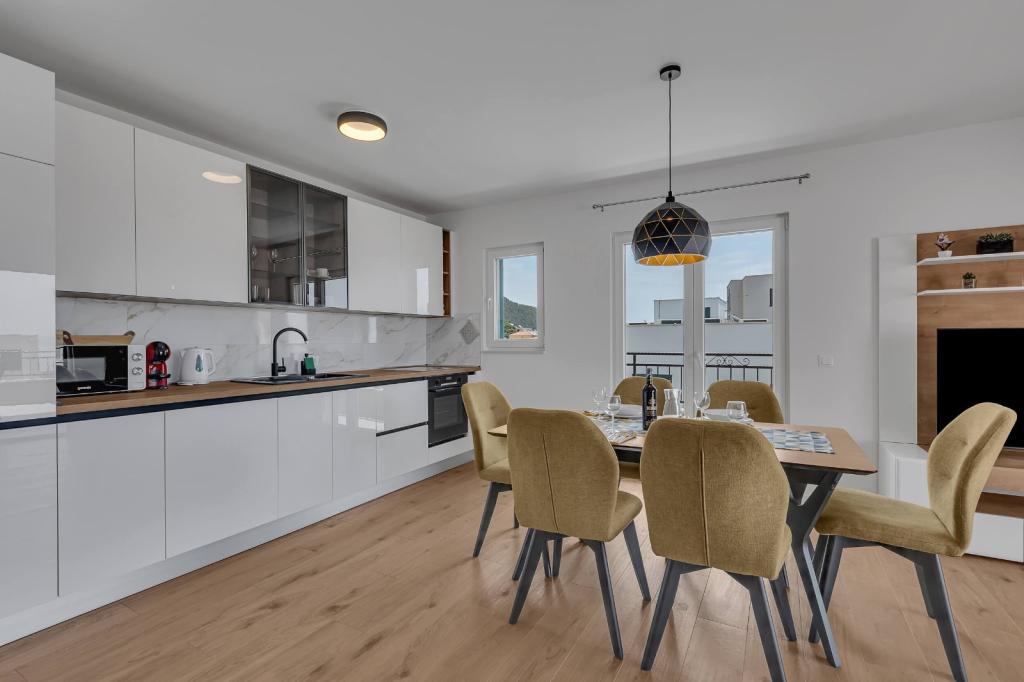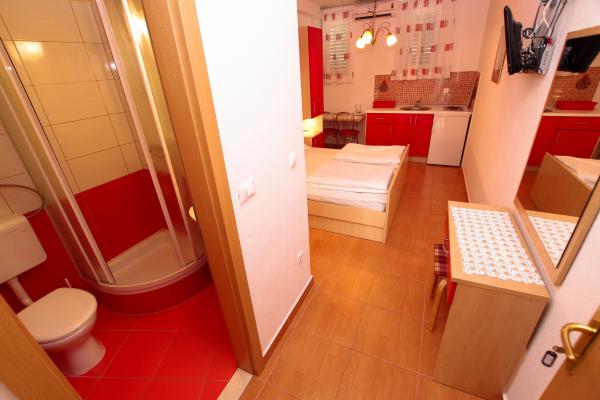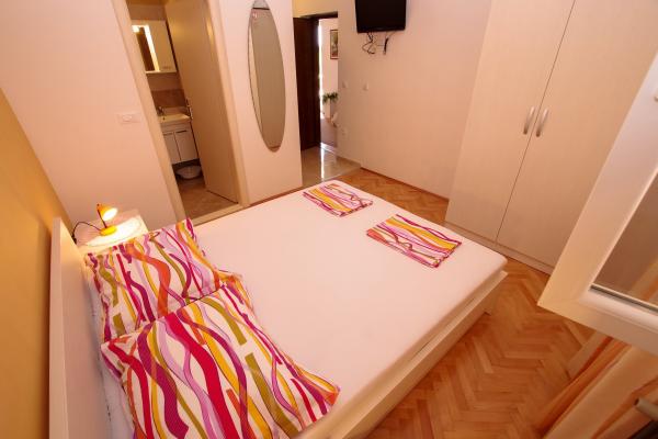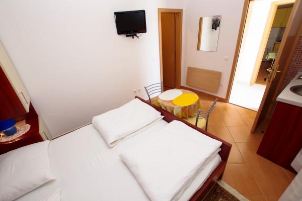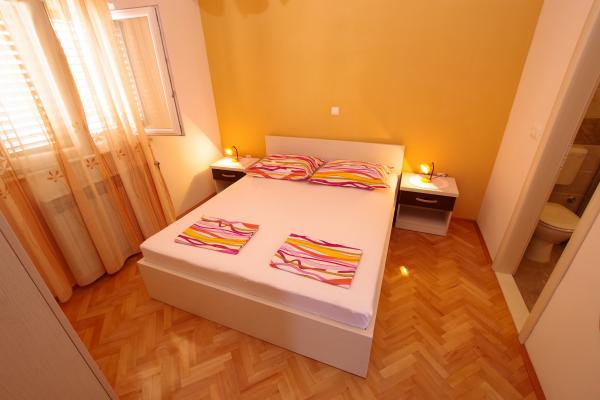 Naše ubytovací kapacity se nacházejí uvnitř domu, kde bydlíme. Kromě zabezpečeného parkování v domě jsme všem hostům poskytli televizory, klimatizaci a přístup k rychlému Wi-Fi internetu. Nacházíme se jen pár minut chůze od centra a moře a asi 10 minut chůze od pláže. V přízemí se nacházejí tři studiové apartmány pro dvě osoby a jeden pro tři osoby, zatímco v prvním patře jsou dva studiové apartmány pro dvě osoby. Ve druhém patře se nachází nově postavený apartmán pro čtyři osoby kategorie čtyři hvězdičky s rozlohou přes 90 metrů čtverečních a balkonem o rozloze přes 50 metrů čtverečních. Apartmán se skládá ze dvou ložnic, dvou koupelen, velkého obývacího pokoje s kuchyní a dvou balkonů. Je kompletně nově zařízený všemi potřebnými spotřebiči, jako je pračka a myčka nádobí, mikrovlnná trouba, lednice, tři klimatizace atd. Tento apartmán je k pronájmu od 25. 7.