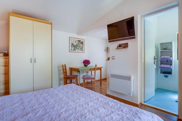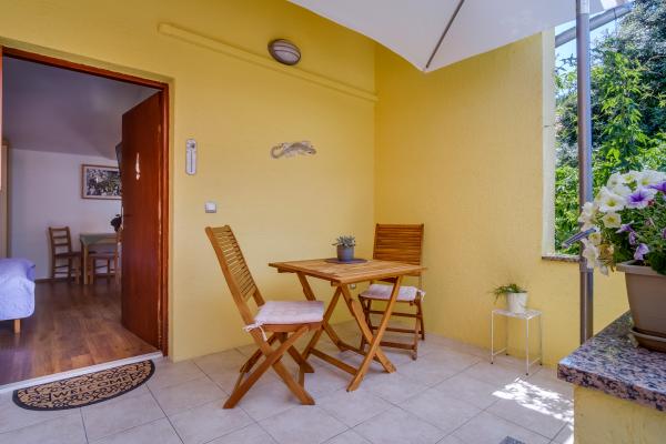 Plně vybavený apartmán Arty, kategorizovaný 4 hvězdičkami, je určen výhradně pro ubytování 2 osob. Jedná se o samostatné zařízení vedle domu, kde bydlí hostitelé. Nachází se v klidné oblasti v blízkosti několika pláží a je ideální pro dovolenou. Je to jen pár minut od nejbližších pláží a o něco dále je několik dalších krásných pláží. Do apartmánu je možné vzít si domácího mazlíčka za příplatek 10 eur. V ceně je zahrnut welcome drink. Kromě vybavené kuchyně, jídelny, ložnice a koupelny má apartmán také vlastní parkoviště, místo pro kola, gril pouze pro hosty, WI-FI internet zdarma, klimatizace, topení, TV, satelit, ... V kuchyni dostane každý host : novou houbu a prostředek na mytí nádobí, kuchyňské utěrky, . .V kuchyni dále: toustovač, kávovar, varná konvice, stojanový mixér,... Přejeme Vám srdečné přijetí a příjemnou dovolenou v našem apartmánu!