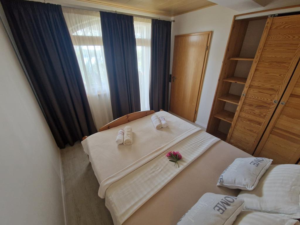 Plně vybavený apartmán má dvě samostatné ložnice, obývací pokoj s kuchyní, koupelnu a terasu. Krásný výhled na moře z terasy, z ložnice a z obývacího pokoje. Nachází se v klidné oblasti Mali Lošinj, vesnice Poljana I, která se nachází 90 m od moře. Pláž je oblázková a betonová a nachází se ve vzdálenosti 350 m. V blízkosti apartmánu se nachází promenáda u moře a cyklostezka. Parkování se nachází před bytem. Domácí mazlíčci jsou vítáni (příplatek za zvíře je 7 EUR na den) Závěrečný úklid apartmánu je 60 EUR