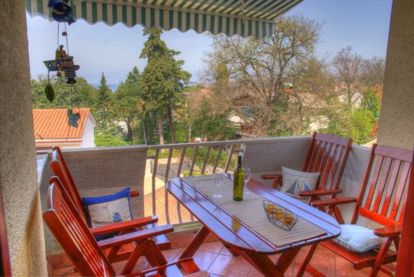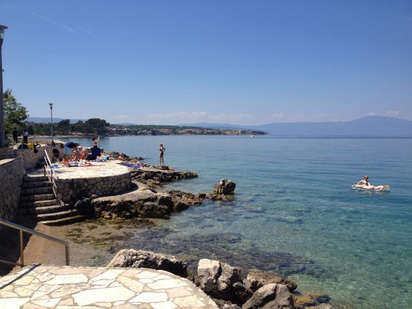 Apartmán Alba je dvoupatrový apartmán (100 m2) ve druhém patře obytného domu a nachází se v klidné čtvrti Malinska, v blízkosti pláží, obchodů, restaurací a dalších zařízení. Nemovitost má 3 prostorné ložnice, koupelnu, samostatné WC, obývací pokoj, plně vybavenou kuchyň s jídelnou a krytou terasu s výhledem na Kvarner. Několik pláží se nachází nedaleko od apartmánu (4 minuty snadné chůze), včetně Malin, Dub a Cuklićevo. Byt je moderně zařízený a plně vybavený: 3 klimatizace, LCD SAT TV, WiFi internet, kávovar, myčka a pračka, mikrovlnná trouba, dětská postýlka na vyžádání atd. Hostům je k dispozici 1 parkovací místo před budovou. V apartmánu se může ubytovat až 7 osob.
