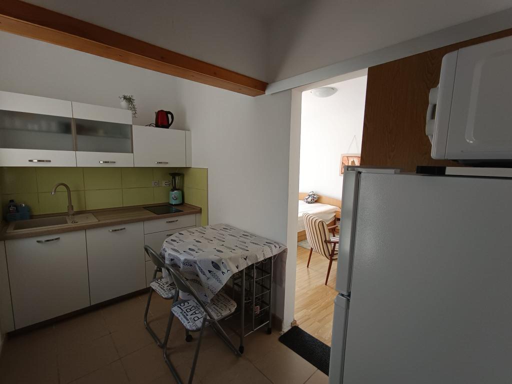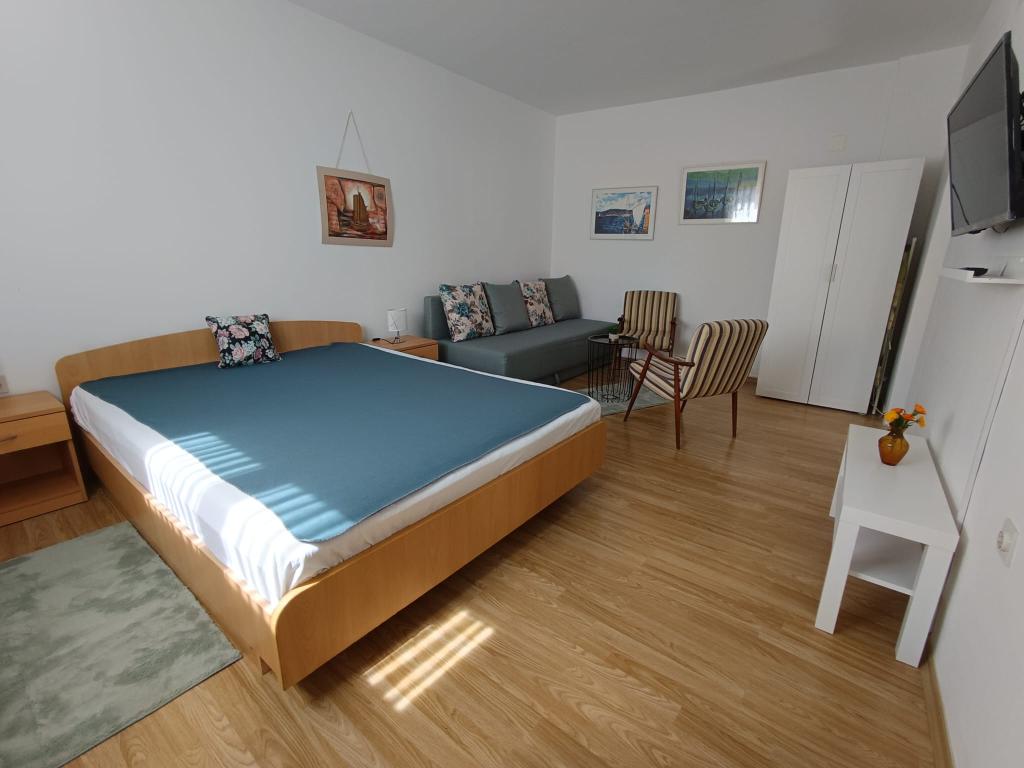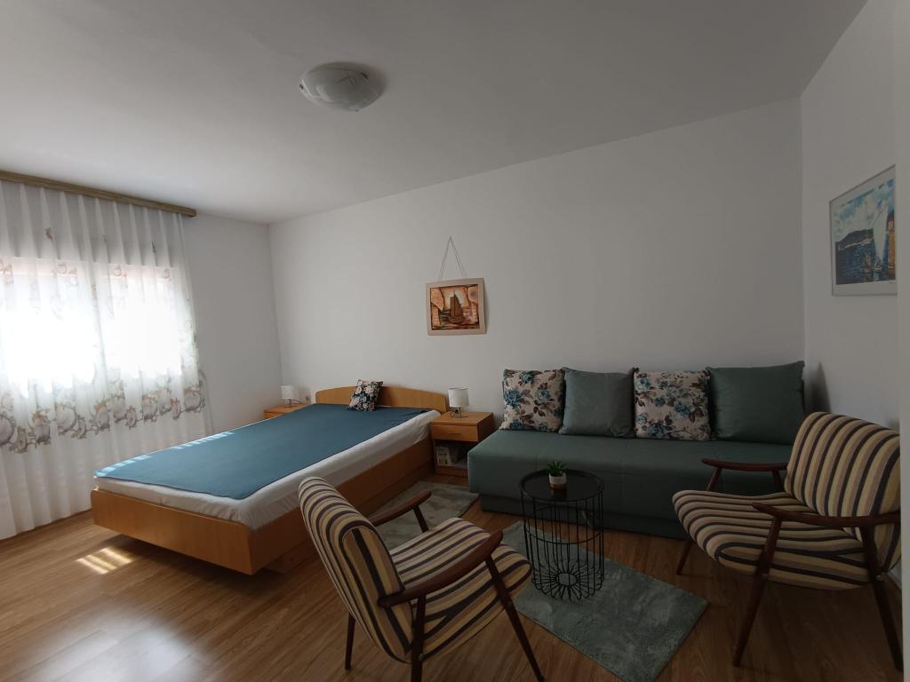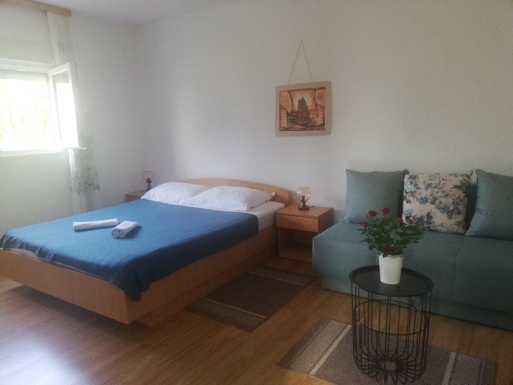 Studio pro maximálně 3 osoby, sestává z pokoje s manželskou postelí a přistýlkou, kuchyně, koupelny a terasy. Parkování pro auto se nachází ve dvoře domu. Byt je kompletně zařízený. Na nejbližší pláž je to 5-8 minut chůze, v blízkosti jsou obchody, tržnice, centrum, restaurace, autobusové nádraží... Pláže jsou převážně oblázkové a betonové. Klidná lokalita.