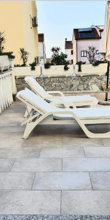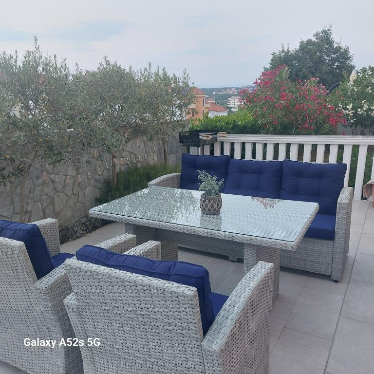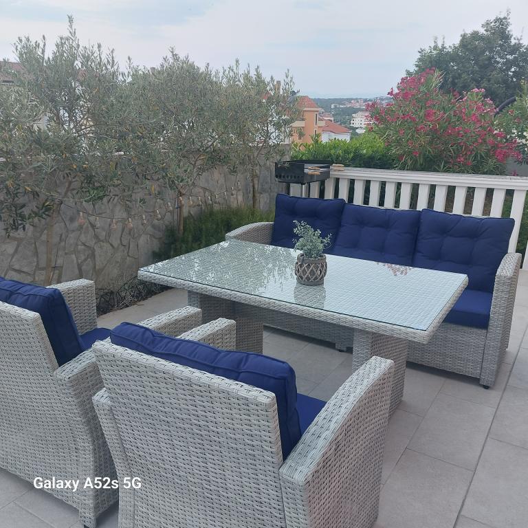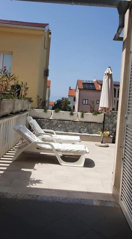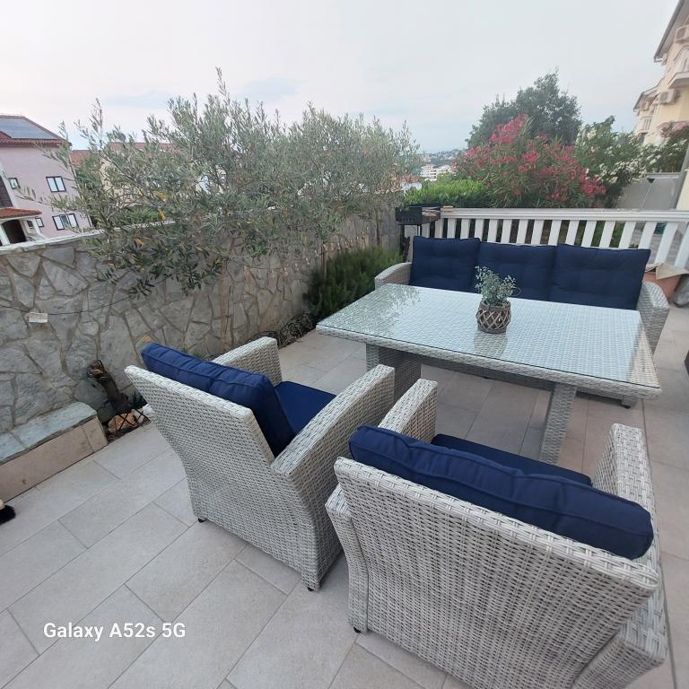 Byt se nachází v krásném městečku Malinska na ostrově Krk. Nachází se v přízemí. Skládá se z ložnice s velkou manželskou postelí (včetně ložního prádla, výměna každých 7 dní) a obývacího pokoje s rozkládací pohovkou pro dva. Prostor je otevřený, takže jídelna a obývací pokoj jsou propojeny. Vybaveno dvěma televizory - jeden v obývacím pokoji s mini linkou a druhý v ložnici. V bytě je koupelna se sprchou (3 ručníky na osobu), pračka a kuchyň s mikrovlnnou troubou, sporákem, kávovarem a velkou lednicí s mrazákem o objemu 50 litrů a myčkou. Parkování před bytem. Nejcennější částí bytu je velká terasa (35m2) s pohodlnými židlemi a lehátky, kde si můžete užít odpolední odpočinek. Když chcete vyjít na terasu, projděte zvláštním koutem se stolem a dvěma židlemi (lodžie), pokud chcete pít kávu s otevřeným výhledem na terasu a částečným výhledem na moře, skrytým před sluncem.