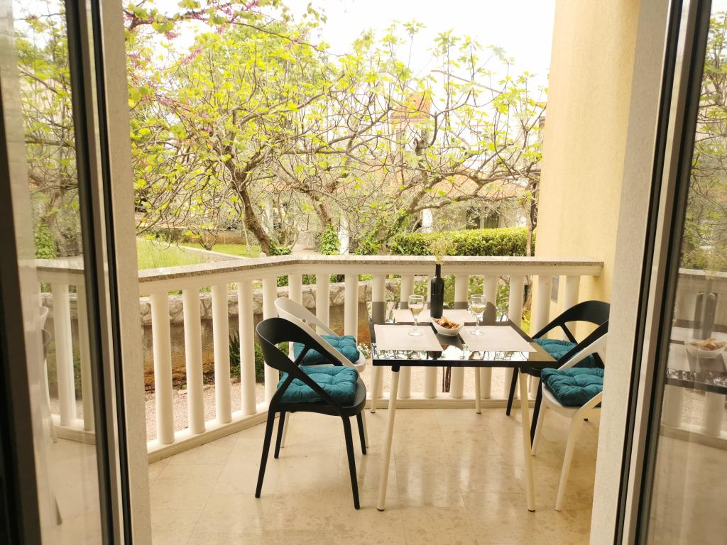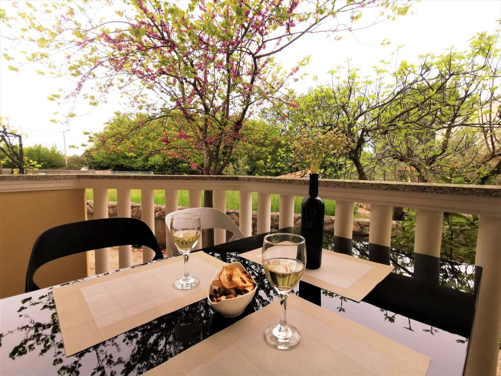 Dva plně vybavené apartmány se samostatnými vchody a zabezpečenými parkovacími místy ve vlastním uzavřeném dvoře a přírodním stínu. Každý apartmán je klimatizovaný a má terasu. Oba mají WiFi, satelitní programy, mikrovlnnou troubu, lednici s mrazákem, toustovač, kávovar, ohřívač vody, fén, ložní prádlo a ručníky. Všechny pokoje mají na oknech sítě proti hmyzu. Je to 10 minut chůze na nejbližší pláž a 40 minut chůze do centra města Malinska. Apartmány jsou součástí rodinného domu v klidné části Malinska a jsou obklopeny zelení.