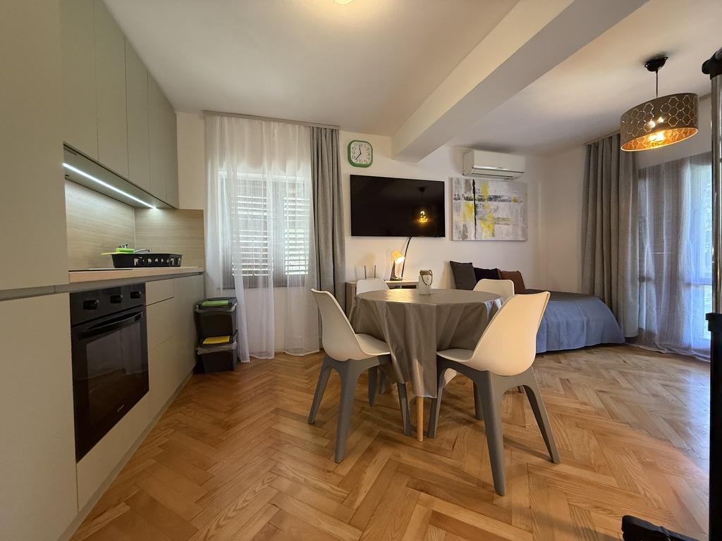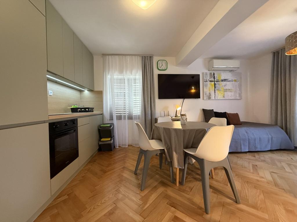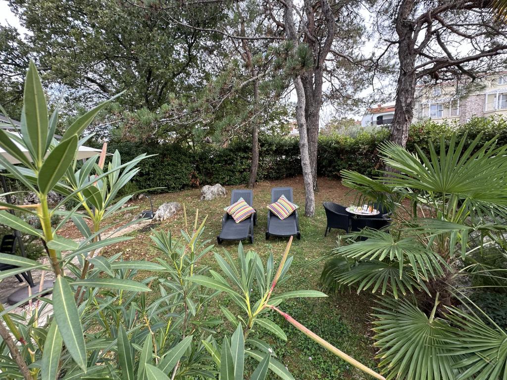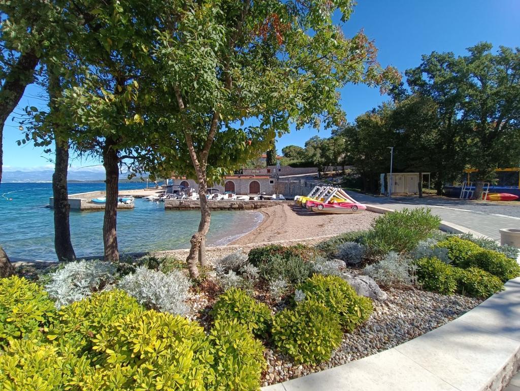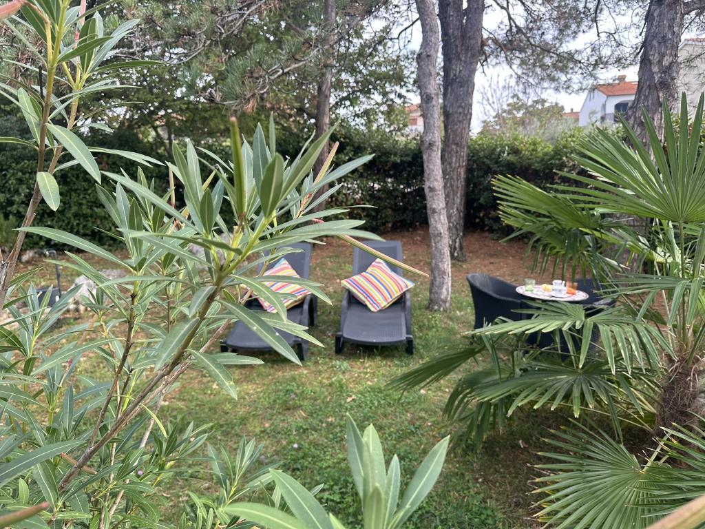 Apartmány 50m2 s terasami a zahradou 200m2 se nacházejí v klidné oblasti 100m od moře a pláže zálivu Rova. K dispozici je samostatné soukromé a bezpečné parkoviště ve stínu. V bezprostřední blízkosti se nachází dětský park, vodní sporty, venkovní posilovna a mnoho restaurací a plážových barů, promenády podél moře a cyklostezky. V prostorné zahradě plné středomořské zeleně je příjemné strávit celý den ve stínu.