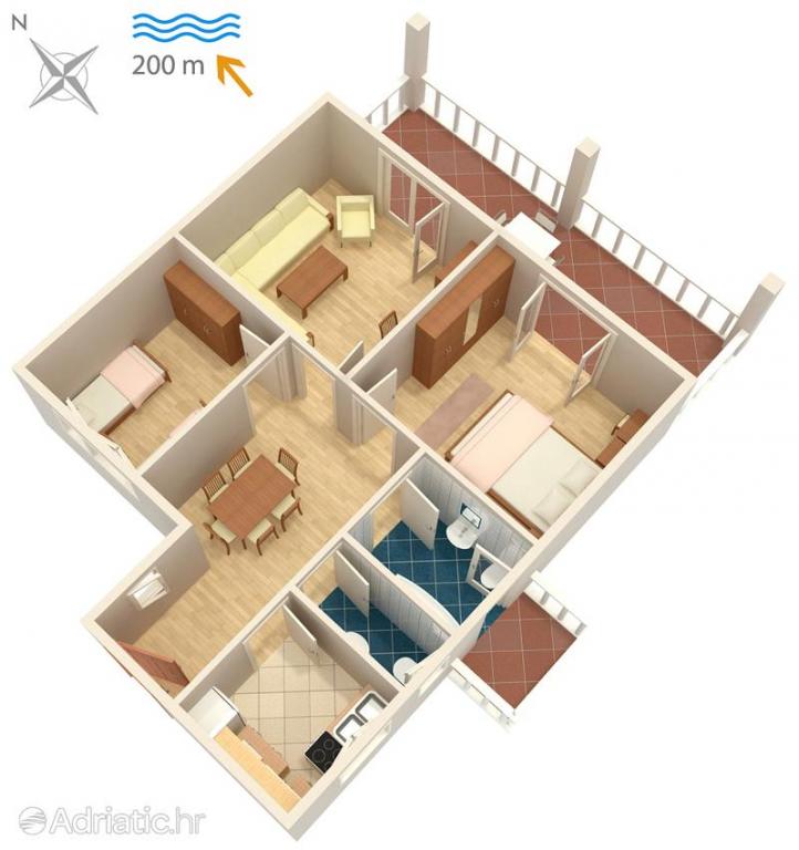 Apartmány Karmelić se nacházejí v klidné části Malinska, v bezprostřední blízkosti moře a krásně upravené pláže a jen 10 minut příjemné chůze do centra. V budově je jedno studio pro 2 osoby a jeden apartmán pro 4-6 osob, v kategorii 4*, plně vybavené apartmány se vším potřebným pro odpočinek a zábavu. Hostitelé bydlí v sousední budově a jsou vám k službám svou laskavostí a pohostinností, když si to budete přát. Pro všechny hosty apartmánu je zajištěno parkování v rámci objektu a bezplatné WI-FI, využívání společné prádelny zdarma a neomezené používání společného grilu na zahradě. Pláž hotelu Malin je jen 3 minuty chůze od apartmánu a nabízí nespočet zařízení pro relaxaci a zábavu - od slunečníků a lehátek, barů, restaurací až po vodní sporty a děti si užívají především místa pro hraní a bezstarostnost. plavání. Mnoho organizovaných výletů do míst na Krku a okolních ostrovech, množství kulturních a zábavních akcí učiní vaši dovolenou nezapomenutelnou.