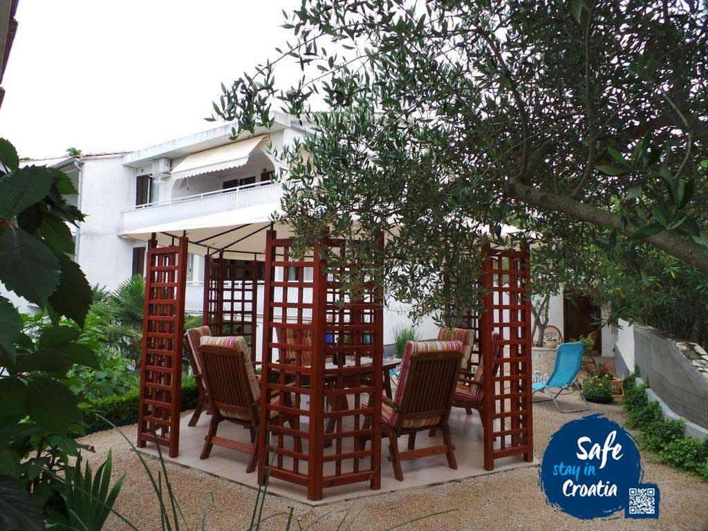 Apartmány Schreng se nacházejí v rodinném domě v klidné části Malinska obklopené zelení. Místo je ideální pro vaši dovolenou, protože vám nabízí vše, co potřebujete pro příjemný pobyt daleko od hluku. Dům nabízí ubytování ve dvou apartmánech. 1. s jednou ložnicí s manželskou postelí a jedním pohodlným apartmánem se třemi ložnicemi. Každý apartmán má samostatný vchod a parkovací místo. Apartmán se třemi ložnicemi se nachází v prvním patře a má terasu o velikosti 20 m2, zatímco apartmán s jednou ložnicí se nachází v přízemí a má jednu prostornou terasu o rozloze 20 m2. Všechny apartmány mají: satelitní TV, internet, klimatizaci a pračku na vyžádání. V prostorné a krásně upravené zahradě je hostům k dispozici gril a altán. Tato nemovitost je 15 minut chůze od centra a trhu a hlavního nábřeží s kavárnami a restauracemi podél pobřeží. Hosté to milují, protože se nachází v nejlépe hodnocené oblasti v Malinska. Je vhodný pro větší skupiny hostů. Vzhledem k současné situaci s pandemií COVID-19 si všimneme, že každý byt má zcela samostatné vchody a