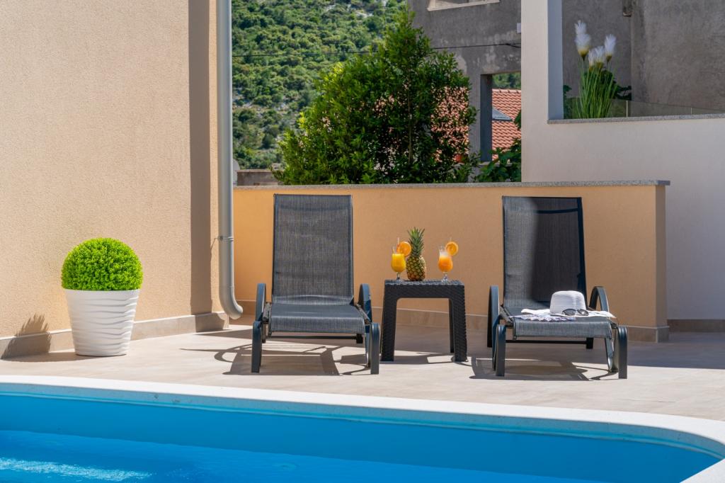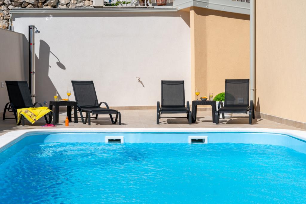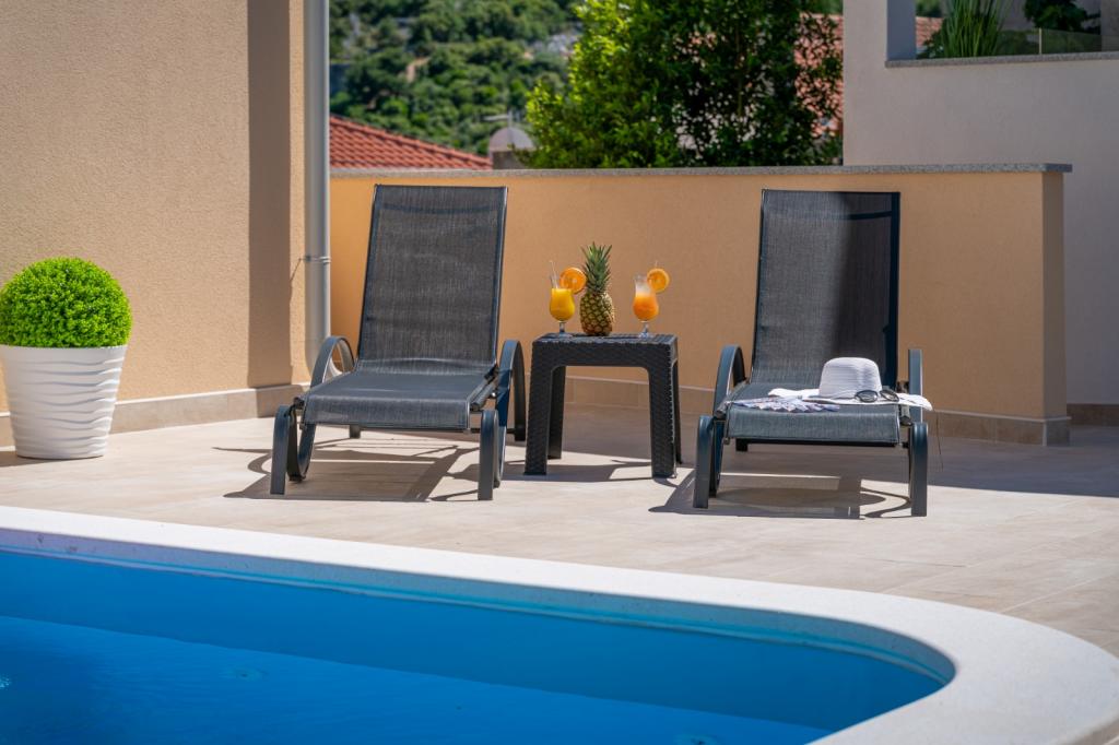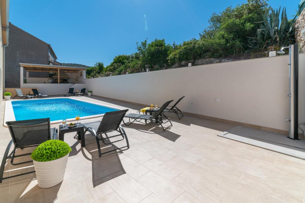 Pravděpodobně jedno z nejlepších ubytování v Chorvatsku. Všechno je velmi dobře udržované, plně vybavené, moderní a klimatizované. U bazénu je terasa s plně vybaveným grilem. U bazénu jsou lehátka, sprcha a toaleta. Výhled z vily je fantastický. Majitelka Marina je úžasná a vřelá osoba. Byla velmi ochotná a dokonce nás přivítala místním masem, sýrem a chlebem. Pláž (oblázková) je doslova dvě minuty odtud. Vřele doporučuji! Rádi se vrátíme.