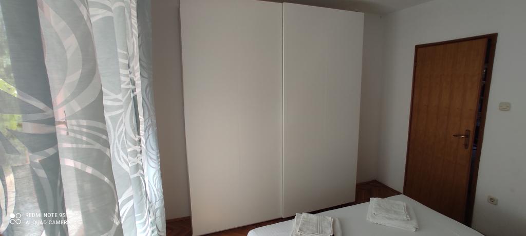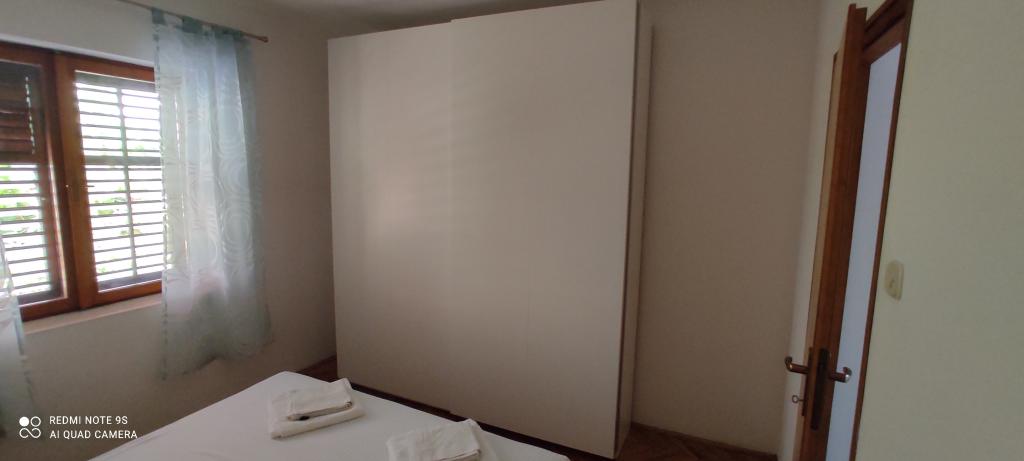 V klidném městečku Miholašćica, známém svou krásnou oblázkovou pláží, 26 km jižně od města Cres, nabízíme 2 plně vybavené apartmány, každý o velikosti 35 m2, s kuchyní, obývacím pokojem, koupelnou, ložnicí a terasou a jeden apartmán. se dvěma ložnicemi, obývacím pokojem, koupelnou. kuchyně a terasa o celkové ploše 55m2.Na zahradě poskytujeme 4 parkovací stání a ohniště s grilem. Pláž je asi 100 m od samotného domu.