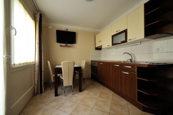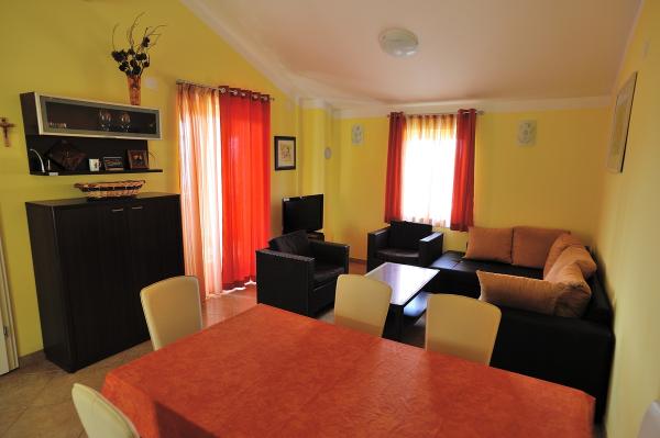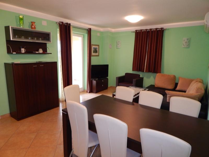 Nové a moderní byt 3 minuty chůze od pláže. V bytě je koupelna (sprchový kout, WC, pračka, bidet). Byt je vybaven klimatizací, satelitní / TV, ledničkou, troubou, trezorem, vysoušečem vlasů. Použití venkovního grilu je na terase v přední části bytu.