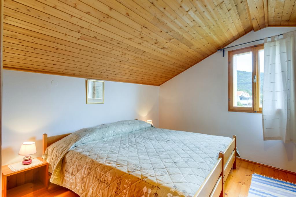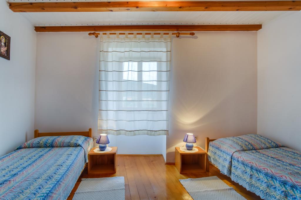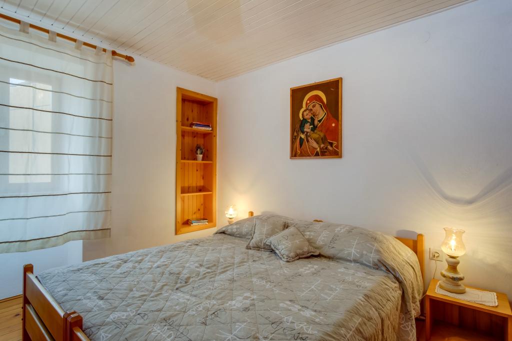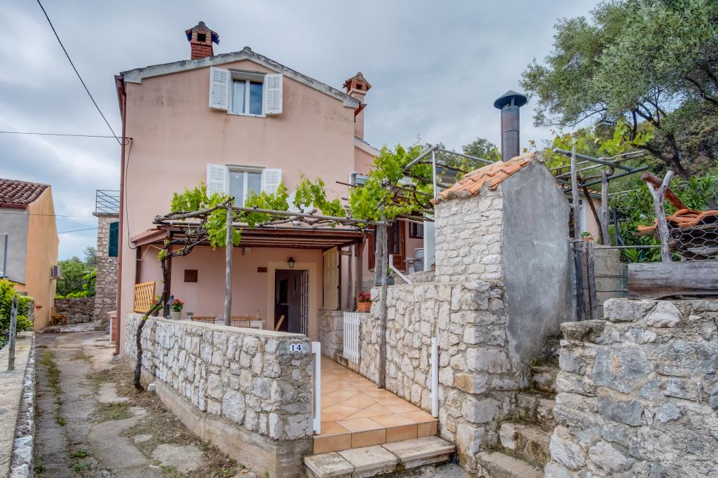 Původní ostrovní kamenný dům **** (86 m2), zrekonstruovaný, zařízený ručně vyrobeným nábytkem, ideální pro rodinnou dovolenou, ale i pro romantickou dovolenou ve dvou. Dům se skládá ze 3 podlaží: Přízemí (plně vybavená kuchyň s myčkou, velkou lednicí s mrazákem, Nespresso a kávovarem, troubou a podlahovým vytápěním, koupelna s pračkou a podlahovým vytápěním a obývací pokoj s SMART SAT TV), první patro (2 ložnice, jedna s manželskou postelí a druhá se dvěma samostatnými lůžky) a podkroví - střešní terasa s krásným výhledem na moře, dvoulůžkový pokoj s klimatizací a koupelnou. Všechny pokoje mají výhled na moře. Hosté mají k dispozici zahradu s grilem a olivový háj s lehátky s výhledem na moře. Soukromé parkoviště pro 2 auta je 50 m od domu a nachází se u silnice. Velmi krásná oblázková pláž je jen 80 m od domu. Internet WiFi je hostům k dispozici ve všech pokojích včetně střešní terasy zdarma.