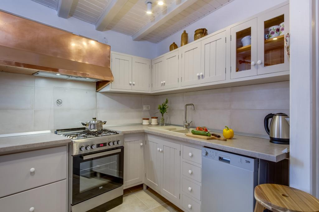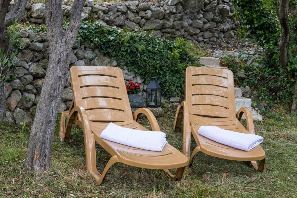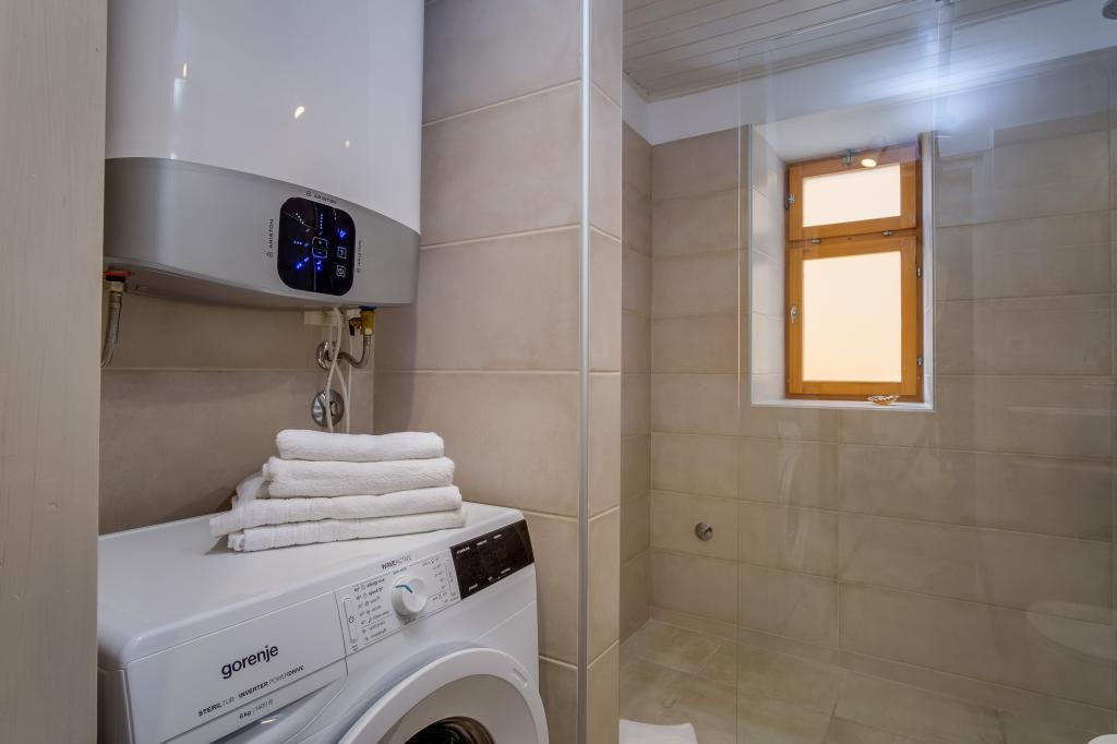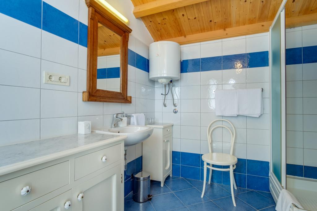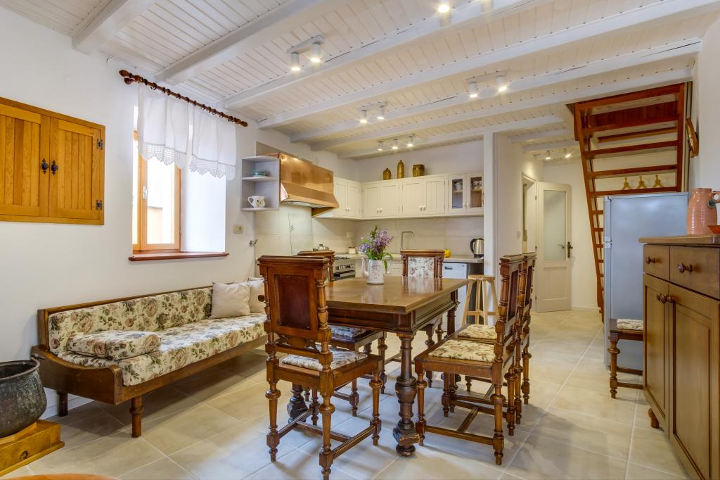Původní ostrovní kamenný dům **** (86 m2), zrekonstruovaný, zařízený ručně vyrobeným nábytkem, ideální pro rodinnou dovolenou, ale i pro romantickou dovolenou ve dvou. Dům se skládá ze 3 podlaží: Přízemí (plně vybavená kuchyň s myčkou, velkou lednicí s mrazákem, Nespresso a kávovarem, troubou a podlahovým vytápěním, koupelna s pračkou a podlahovým vytápěním a obývací pokoj s SMART SAT TV), první patro (2 ložnice, jedna s manželskou postelí a druhá se dvěma samostatnými lůžky) a podkroví - střešní terasa s krásným výhledem na moře, dvoulůžkový pokoj s klimatizací a koupelnou. Všechny pokoje mají výhled na moře. Hosté mají k dispozici zahradu s grilem a olivový háj s lehátky s výhledem na moře. Soukromé parkoviště pro 2 auta je 50 m od domu a nachází se u silnice. Velmi krásná oblázková pláž je jen 80 m od domu. Internet WiFi je hostům k dispozici ve všech pokojích včetně střešní terasy zdarma.