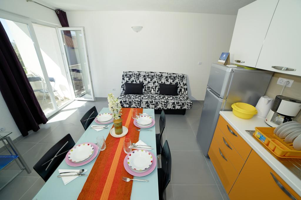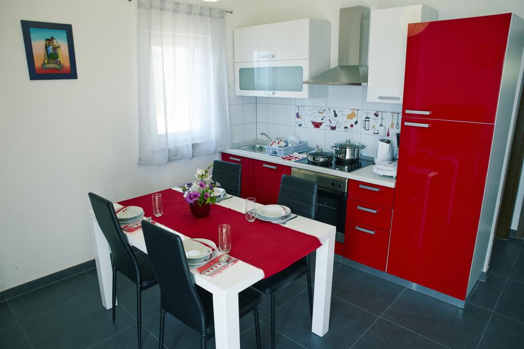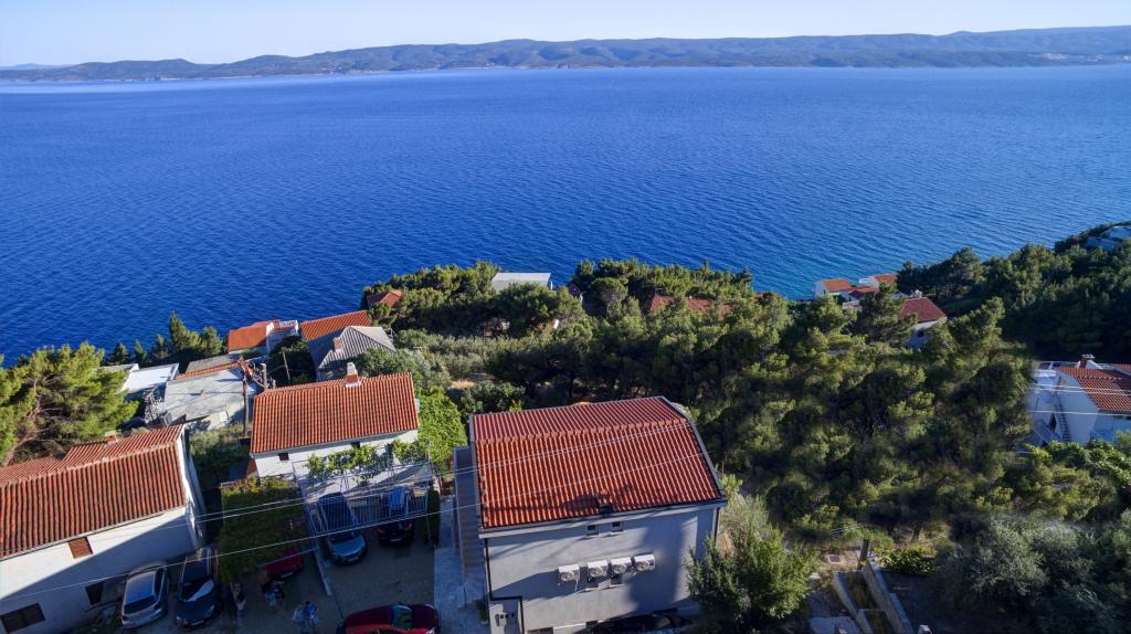 Dům se 4 nových bytů s výhledem na moře a ostrov Brač v malé klidné vesničce Marušići která je jednou z nejkrásnějších pláží na Blízkém Jadranu. Apartmány jsou ideální pro rodiny s dětmi a poskytuje veškeré pohodlí (klimatizace, flat rate internet a TV se satelitním příjmem). Každý apartmán má moderní vybavení a má ložnici, Luxusně zařízený koupelnu a kuchyň, jídelna a obývací pokoj v oblasti, kde je rozkládací pohovka, která převádí do postele pro dvě osoby.