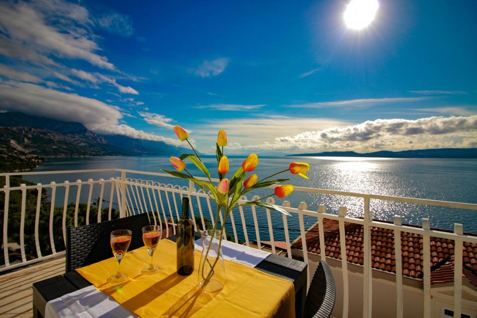Fantastický prázdninový byt s mnoha výhodami: Byt je prostorný, moderní a esteticky velmi atraktivně zařízený, samozřejmě také s W-LAN a klimatizací. Z balkonu máte fantastický výhled na moře a hory - kombinace, kterou může nabídnout pouze Chorvatsko! Byt se nachází v malé vesničce Marušići nedaleko "pirátského města" Omiš, ve velmi klidné lokalitě a zároveň snadno dostupný z pobřežní silnice. Idylická pláž, kterou navštěvují převážně místní, je odtud jen pár minut. Na kajaku pronajímatele můžete pádlovat podél pobřeží. Jadranka a Doni jsou velmi přátelští a zdvořilí majitelé s radami a jednáním!
