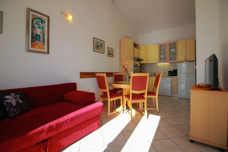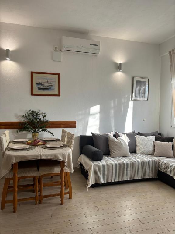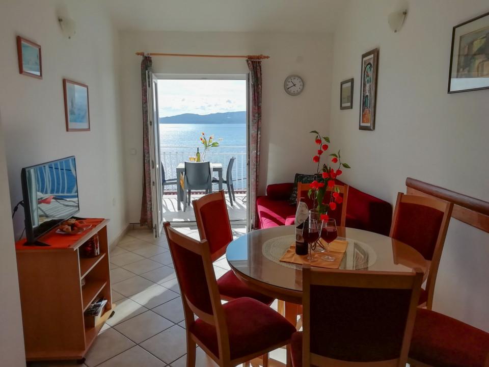 Apartmán je vybaven vším, co potřebujete. Cítíte se jako doma, ale když vyjdete na terasu, už víte, že tam nejste. Výhled z terasy je úchvatný. Ranní káva na terase se sluncem vykukujícím přes horu. Večerní sklenka vína s měsícem krásně osvětlujícím moře. Pláž je jen pár kroků odtud. Klid a pohoda, ale v případě potřeby stačí popojet pár kilometrů a najdete obchody, restaurace a restaurace. V blízkosti je spousta možností pro aktivní a adrenalinovou rekreaci. Toto místo nastavuje laťku pro vaši příští dovolenou vysoko. Hostitelé jsou velmi komunikativní, přátelští a vřelí. Apartmán, hostitelé i vesnice zaručují dovolenou snů.