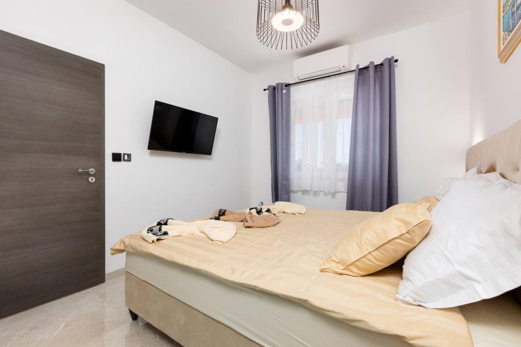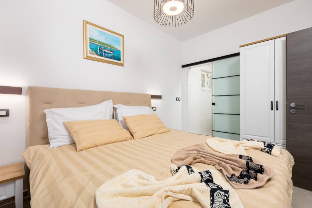 Apartmán First Mary je luxusní a pohodlný apartmán o velikosti 127 m2 pro max. 8 osob A obsahuje kuchyň, obývací pokoj, samostatné WC s pračkou a tři klimatizované pokoje s vlastní koupelnou a TV/SAT. Jídelna se otevírá na prostornou terasu o rozloze 60 m2 a skládá se z plynového grilu, lednice na víno, stolu pro 10 osob a zahradního nábytku pro radost a odpočinek s krásným, uklidňujícím výhledem na moře, stejně jako zařízení pro volný čas, kulečníkový stůl a šipky. Apartmán Second Mary je luxusní a pohodlný apartmán o velikosti 80 m2 pro max. 5 osob s výhledem na moře. Skládá se z obývacího pokoje, kuchyně, samostatné toalety s pračkou a dvou klimatizovaných pokojů s vlastní koupelnou a TV/SAT. K bytu náleží soukromá terasa 25 m2 s plynovým grilem, stolem pro 6 osob, lednicí na víno a také zábavou, stolním fotbalem a šipkami.